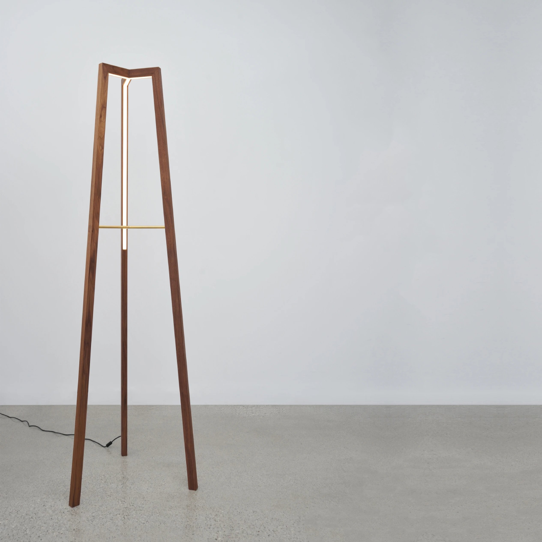 The Junction Floor Light by Hollis+Morris extends the brand’s sculptural design language into a refined, architectural floor-standing form. Defined by the meeting of solid wood and precisely engineered metal, its structure feels both balanced and intentional, creating a strong yet understated presence within a space.