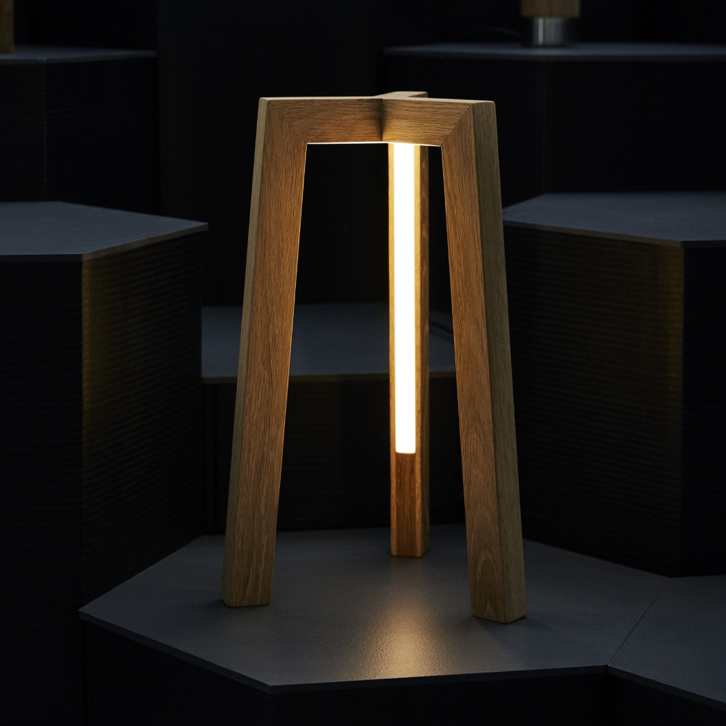 The integrated light source emits a soft, ambient glow, making it ideal for desks, bedside tables or intimate living spaces. With its thoughtful proportions and meticulous craftsmanship, the Junction Table Lamp embodies a quiet, contemporary elegance, where material integrity and simplicity come together to enhance everyday environments.