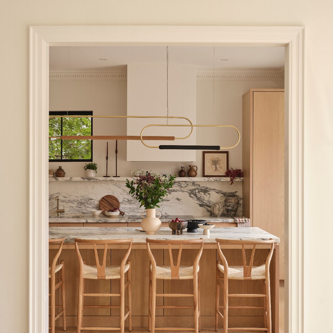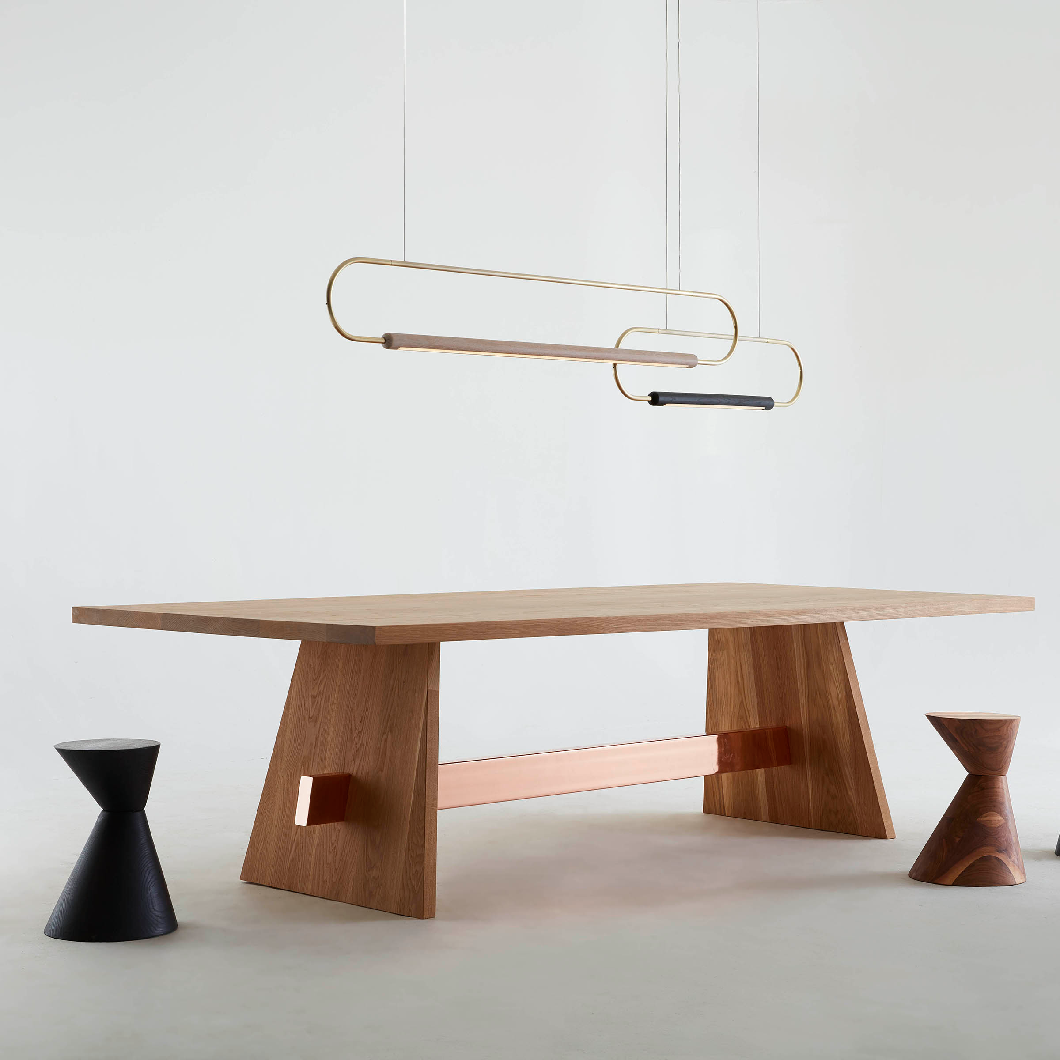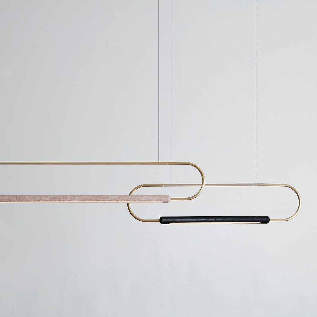 The Horizontal Link LED Pendant by Hollis+Morris presents a refined, linear composition that brings rhythm and balance to contemporary interiors. Defined by its interconnected structure, the design pairs solid wood elements with precise metal detailing to create a continuous, architectural form.