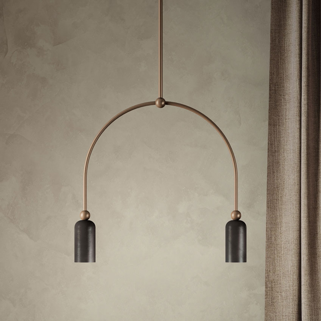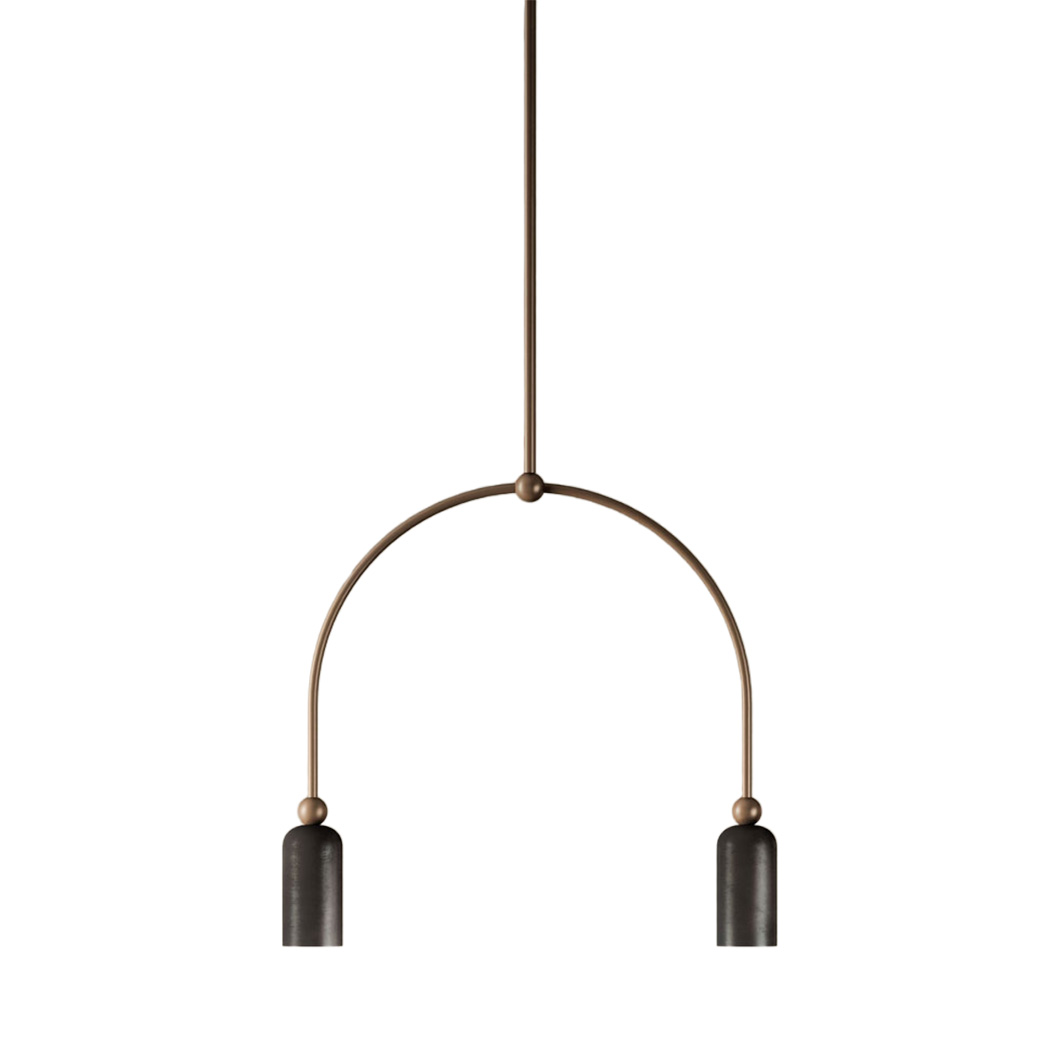 The Madame Double Pendant by Il Fanale offers understated elegance that effortlessly elevates a modern interior. The dual-headed suspension light features an arched metal frame that holds the two lamp heads, each with small spherical details. The lavish drop light is a stylish statement piece when suspended over a dining table, both independently or in a group.