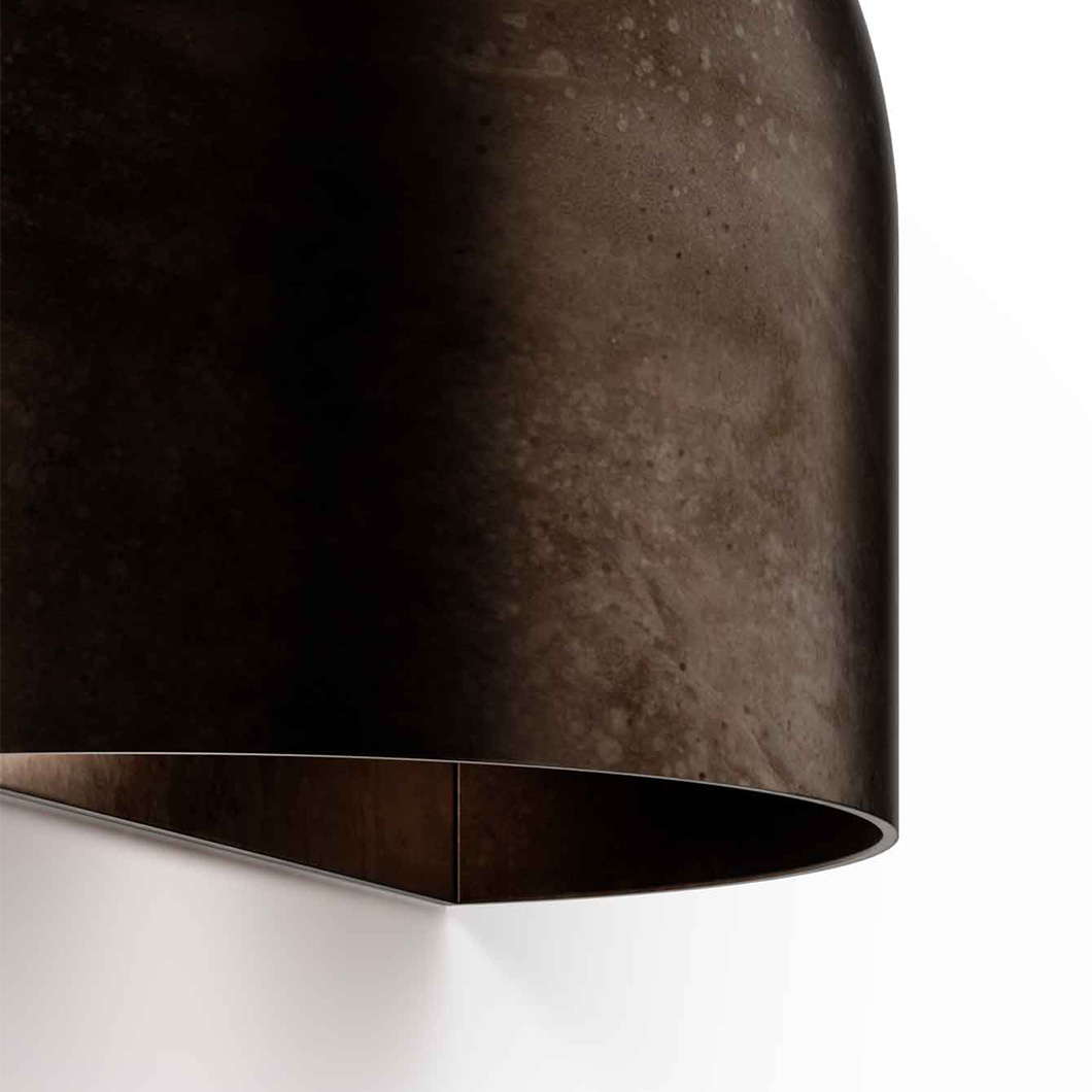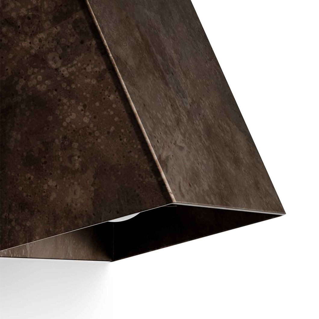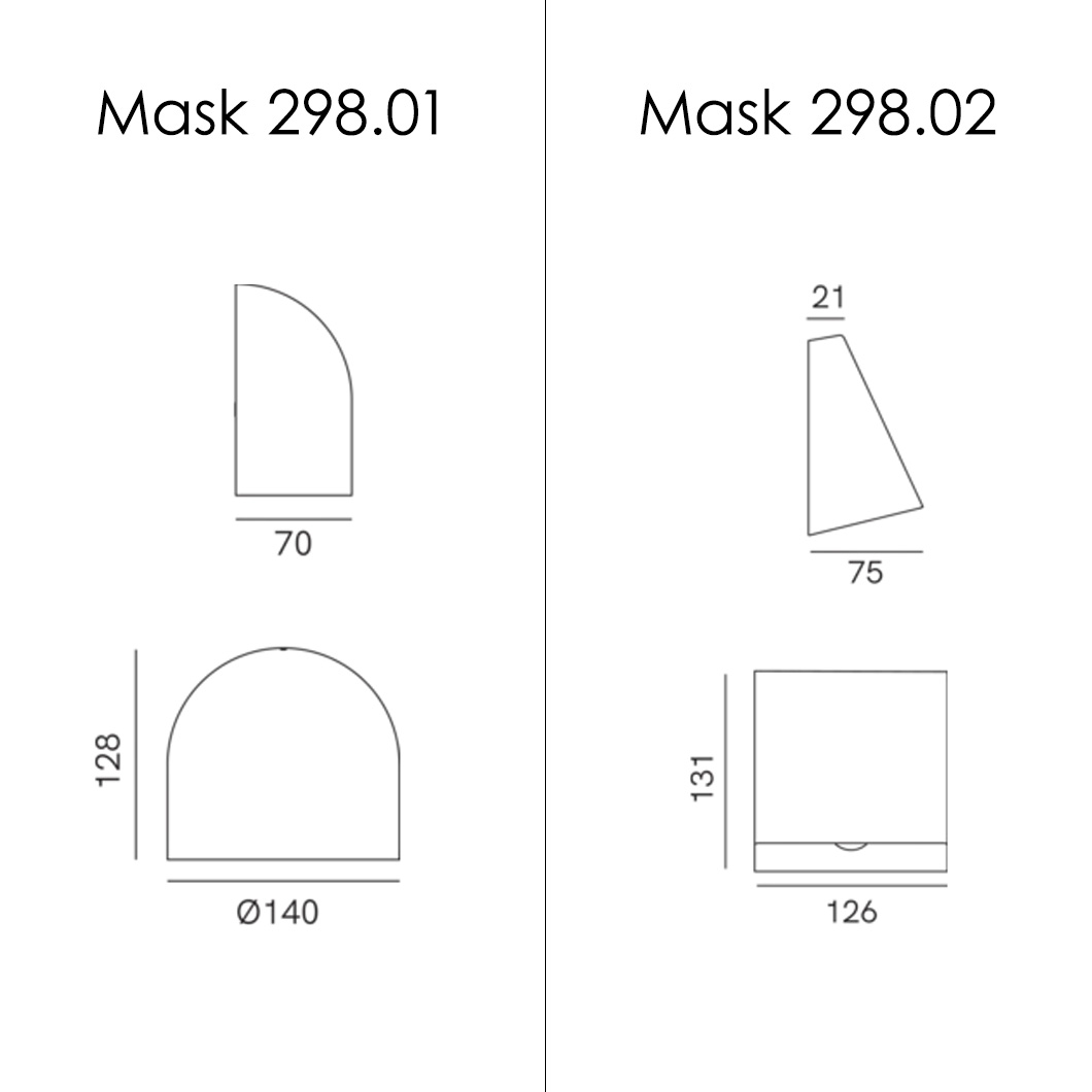 Mask is available in two versions: one with a soft, rounded silhouette, and the other with a sharp-edged, tapered shape. Featuring a dark brass finish, both versions of the sophisticated luminaire are petite decorative accents. Mask has an integrated 3000K LED, dimmable with the supplied driver.