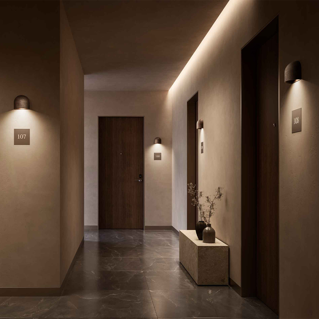 Mask by Il Fanale explores the duality between light and shadow, creating a timelessly elegant atmosphere through its design. The wall light has an IP65 rating, allowing it to be installed in outdoor areas, such as on a tranquil terrace or patio area.