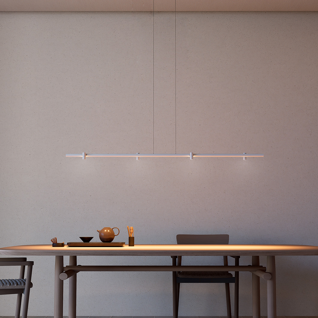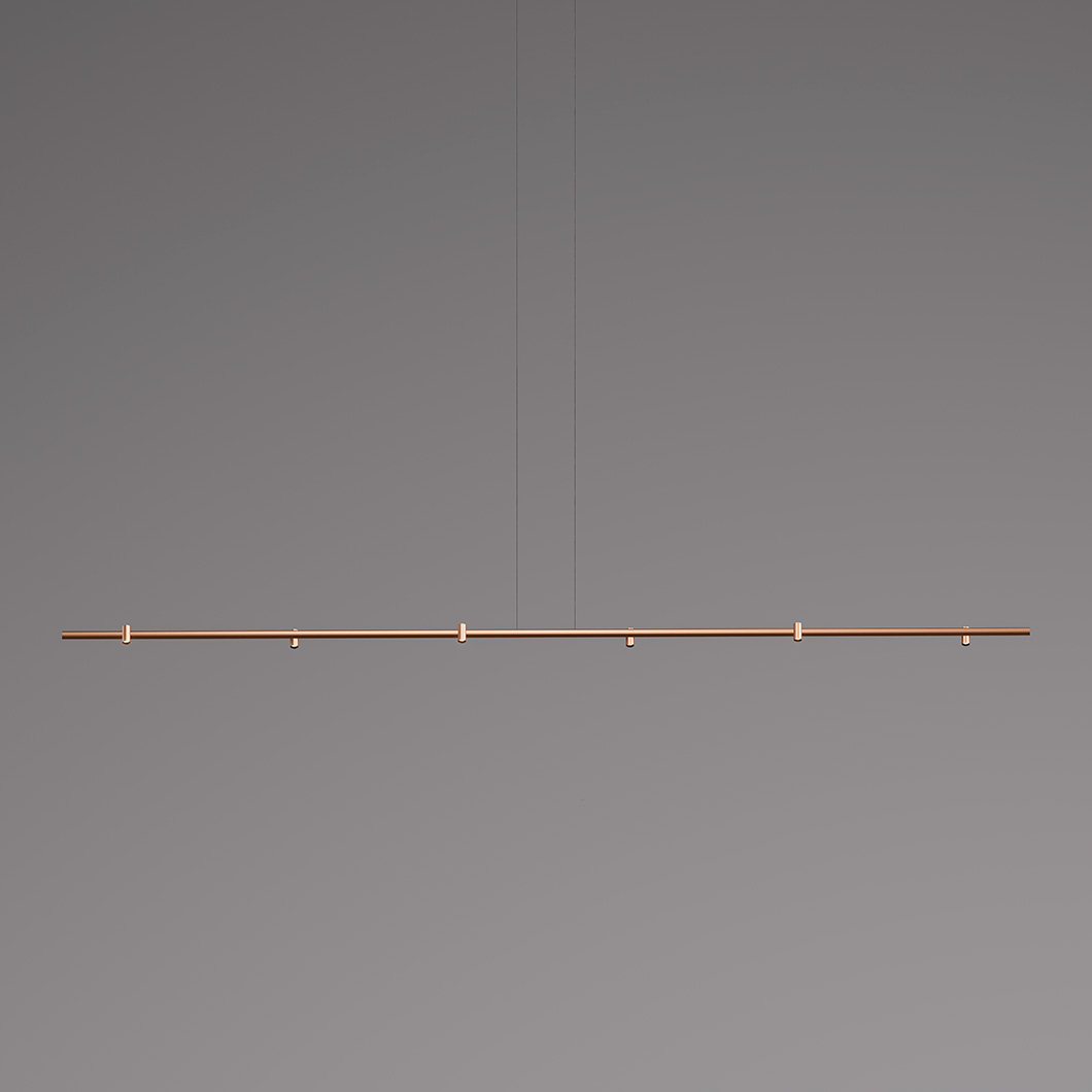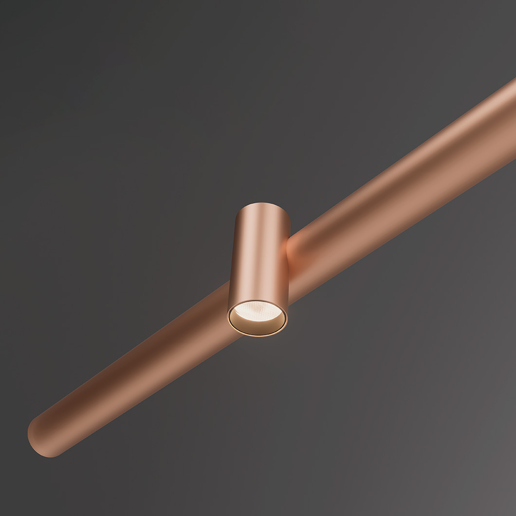 Adapting to a variety of spaces, Gravity is available in two lengths: 1600mm or 3000mm. The sleek statement piece has three stylish finishes: black, white or copper. Gravity is dimmable via DALI / PUSH.