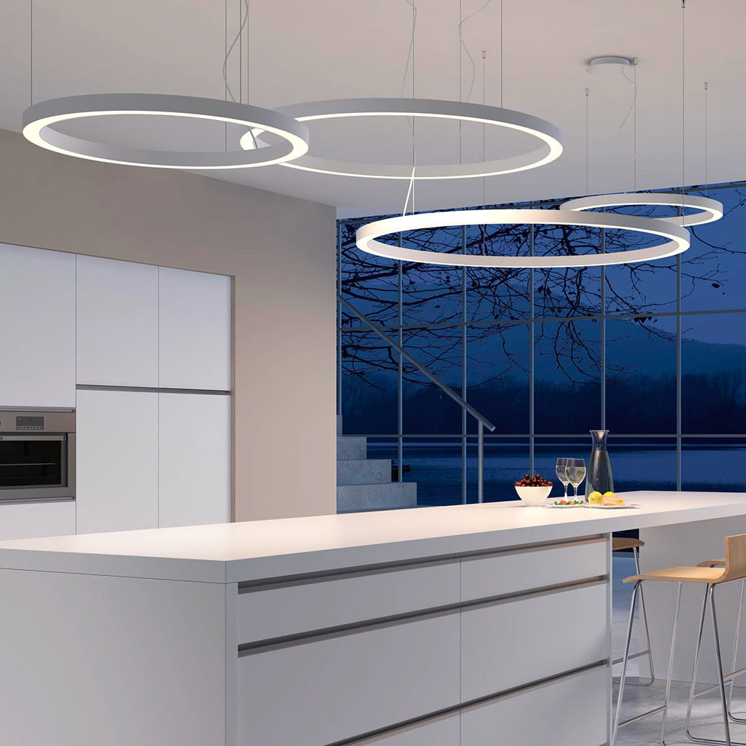 The Insolit TR 1220 Down LED Pendant shows off a minimalist design that is sure to complement any modern interior. Made of an extruded aluminum profile with an opal polycarbonate diffuser, this stylish suspended light provides direct donward illumination for a warm, inviting ambience. With a 1220mm diameter, the TR Down Pendant will enhance your space, seamlessly blending into a contemporary environment or even making a statement in a simple, minimalist setting.