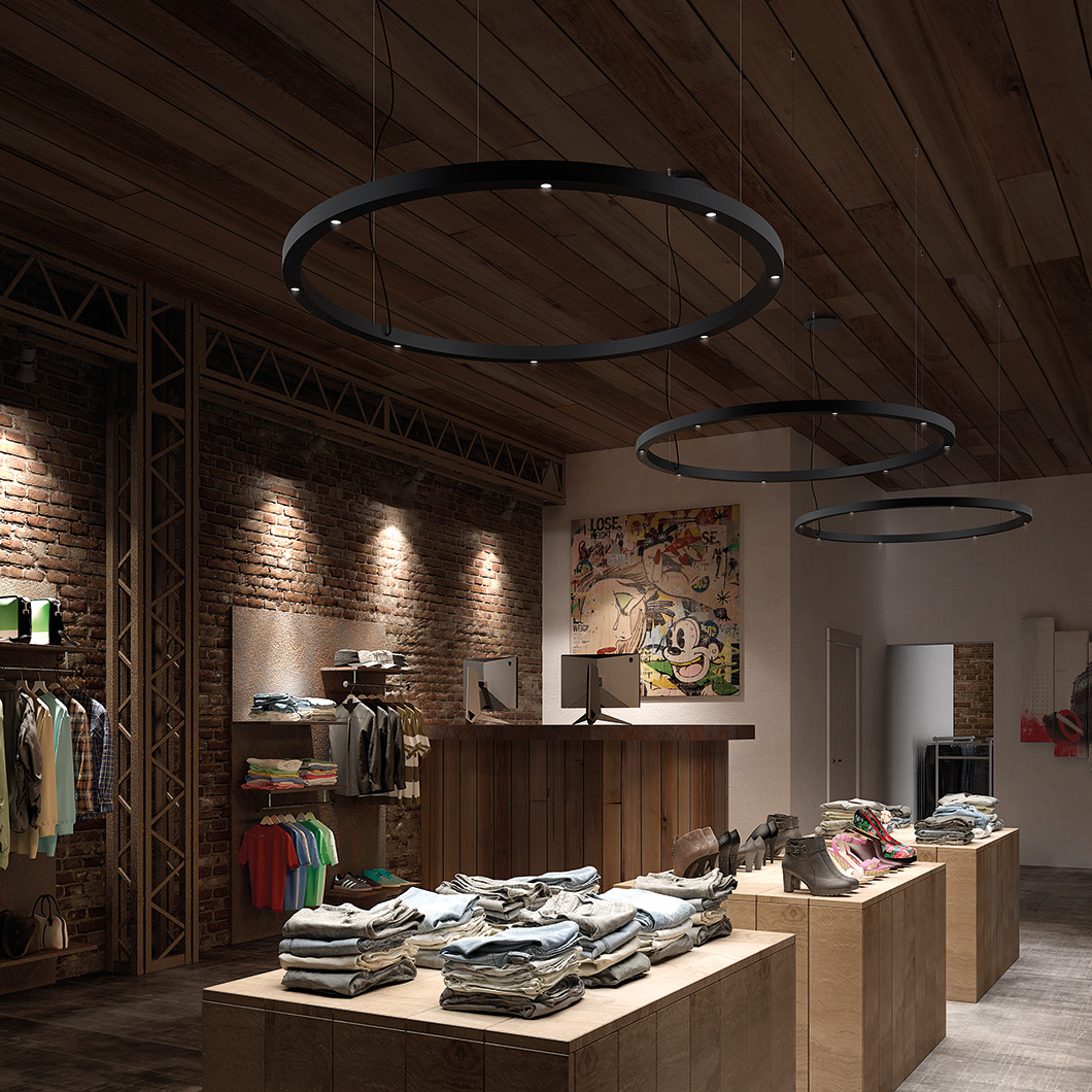 The TR Spot is a focal point in any space, providing ample illumination and commanding attention. Installed over a dining table, TR Spot beautifully lights up an evening meal. Or, the TR 1220 Spot is ideally suited to illuminate a commercial or retail space thanks to its grand dimensions and minimalist look.
