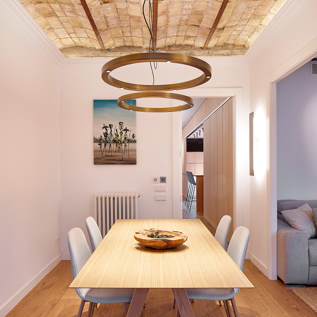 Showing off a sleek circular design, the TR 700 Spot & Up LED Pendant by Insolit presents a minimalist look with maximum function. Providing light both upwards and downwards, TR Spot & Up integrates focal spotlights underneath the pendant for direct illumination with an upper polycarbonate diffuser for indirect lighting above the fixture. With a 700mm diameter, this stylish suspension light is a stunning blend of form and function, perfectly enriching a contemporary lounge or lavish hallway.