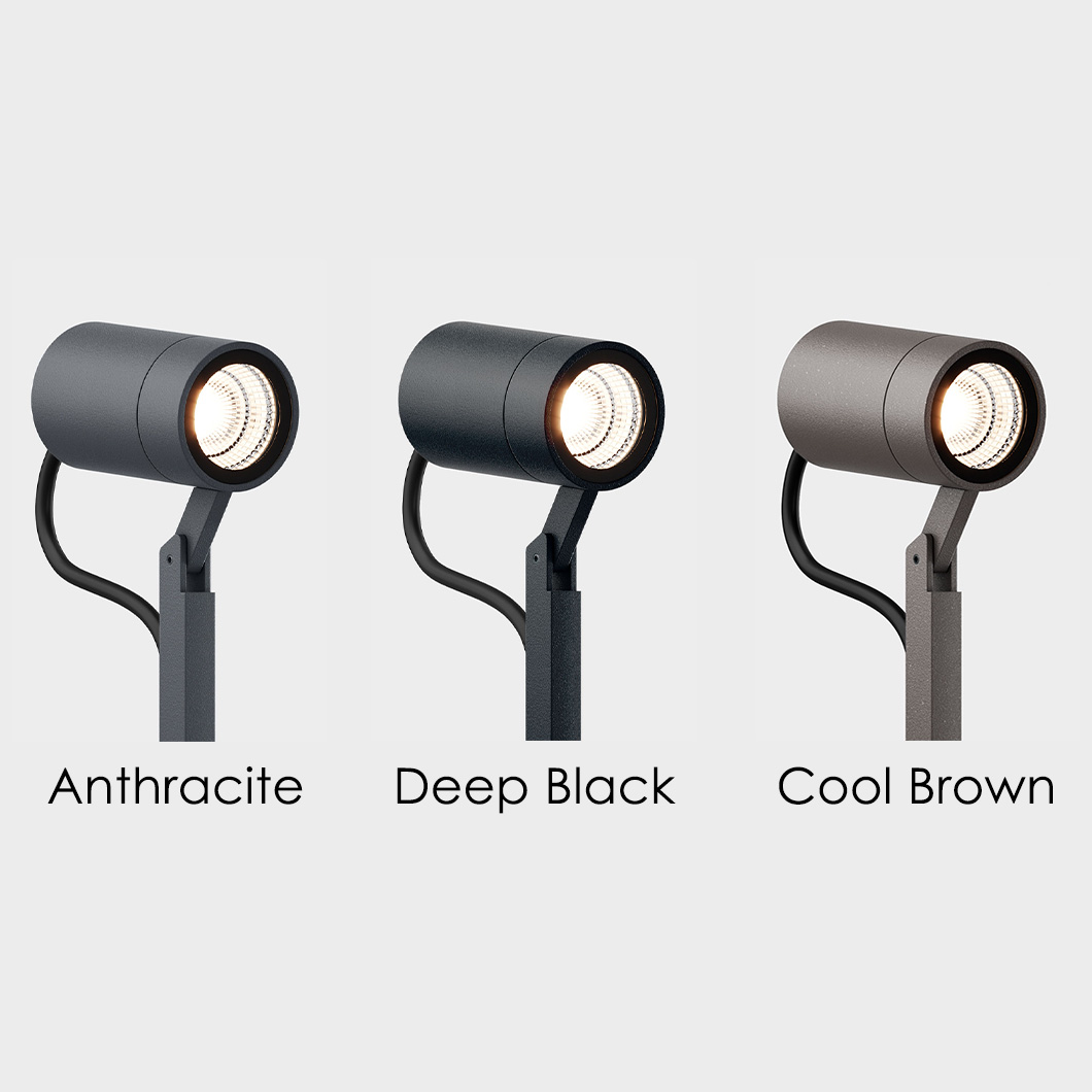 Available in three dark finishes, Piek Mini will seamlessly blend into your garden space. Choose from deep black, anthracite or cool brown for the luminaire’s powder coated finish.