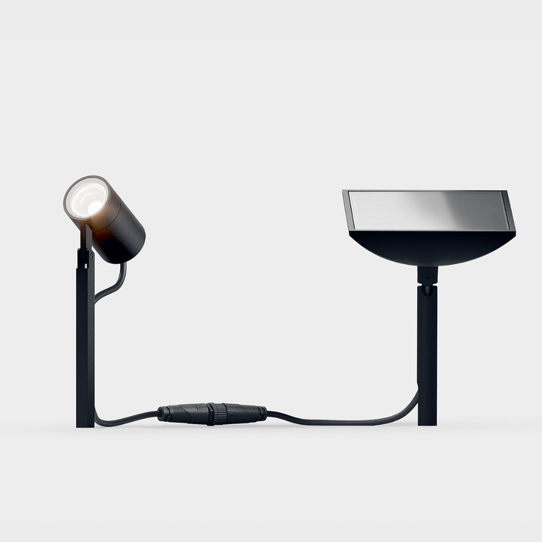 The Piek Mini IP65 Outdoor Solar Spike Spotlight by IP44.DE is a compact yet powerful lighting solution for your outside area. Offering an adjustable ⌀40mm lamp head, the contemporary luminaire utilises a flood glass reflector, allowing you to direct the warm white glow of the flexible spotlight where you need it. Powered by a connected solar panel, Piek Mini is a self-sufficient light, automatically activating when it gets dark for approximately 5 hours.
