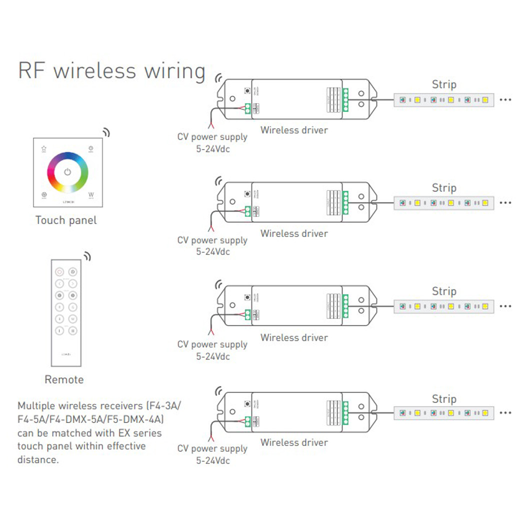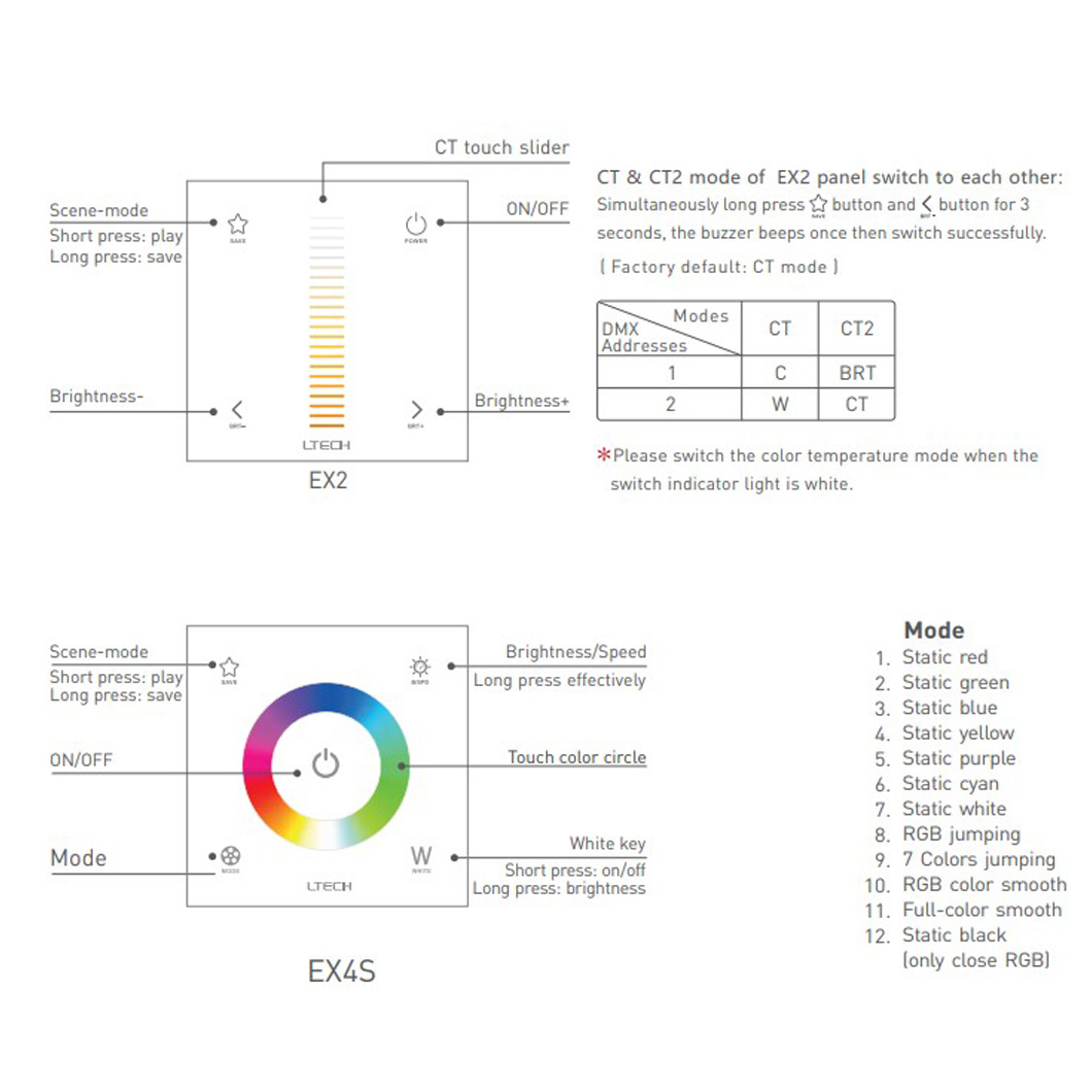 Wall mounted touch panel controller, suitable for synchronised control of RGBW lighting.