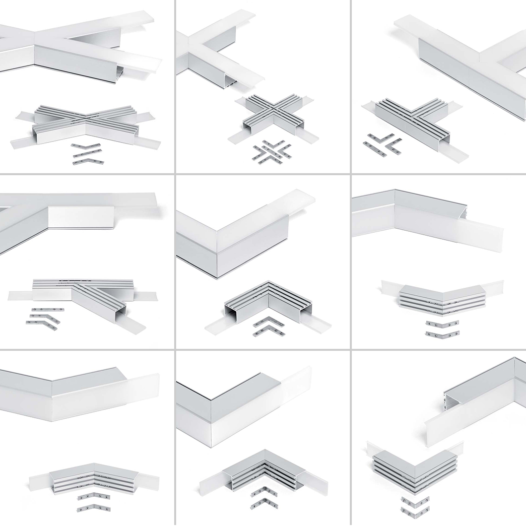 LED Profilelement L24 Linear profile for concealed and integrated installation in walls and ceilings. The L24 LED recessed profile is made from high-grade aluminium, in which a maximum of 2 LED strips with 8-10mm width can be installed. If the distance of the LED chips is less than 15mm, a homogeneously illuminated line (without visible points) is created.