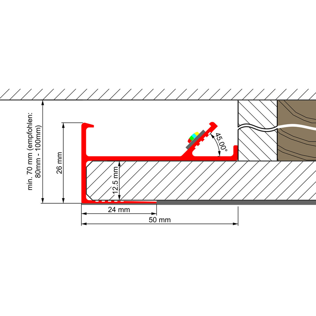 LED Profilelement VT profile is ideal for concealed and integrated installation in walls and ceilings. The VT LED recessed profile is made from high-grade aluminium, in which a wide channel allows for a length of LED tape. to run through. Perfect for creating dramatic indirect lighting effects behind 'floating' structures. Opal supplied diffuser cover made of polycarbonate (PC) is weathering and UV-resistant and flame-retardant. The optional end caps, made of polypropylene (PP), additionally seal the profile.