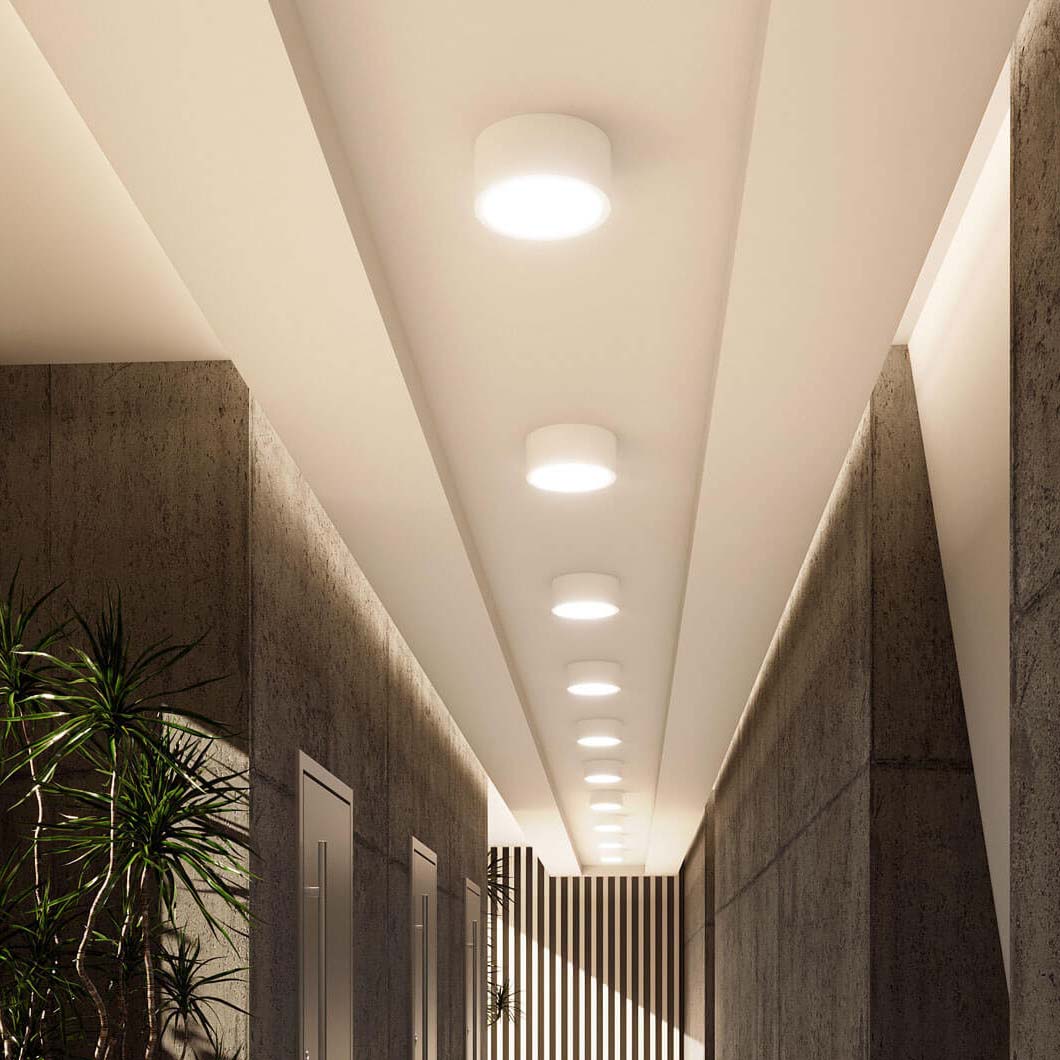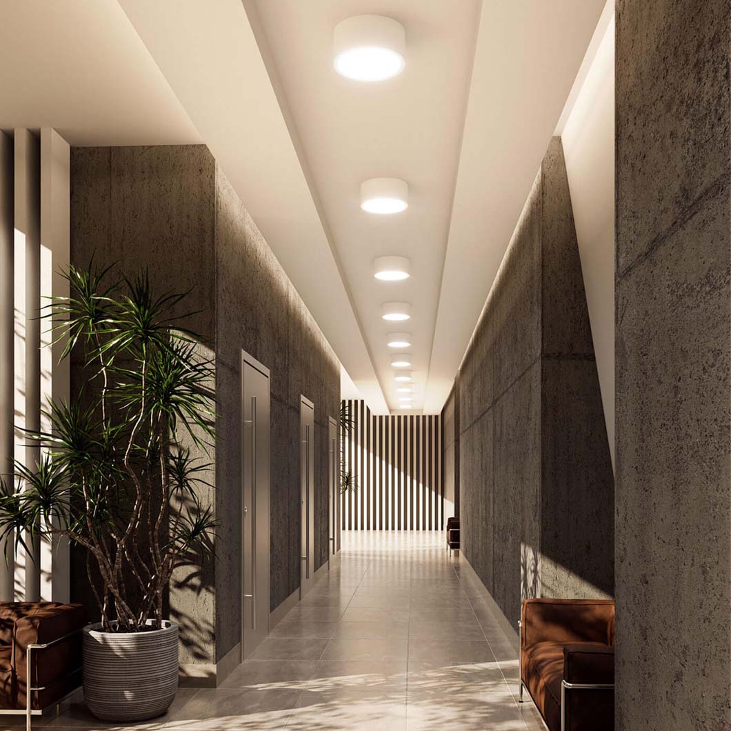 The surface mounted in the RQ range, the RQ 220 LED N Plus combines an integrated energy-efficient LED with a minimalist design. The plastic body keeps the weight of the fitting low. The diffuser offers superb light and the LED guarantees low power consumption. With a high luminous flux of over 2000 lumen, the RQ 220 is perfect for commercial areas like offices, corridors and public spaces.