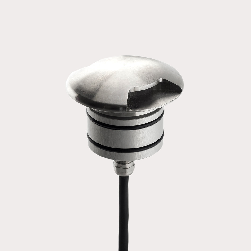 The Bia Round is a dual emission outdoor recessed path light by LLD (LED Luce E Dintorni) that's under 8cm in diameter. Twice the size of the mini version, the versatile LLD Bia is suitable for both private garden and commercial outdoor lighting projects, and can be installed in the wall as a low level or step light or into the floor as a path light. The Bia Round can be driven over up to 1500kg and has a rating of IP67.