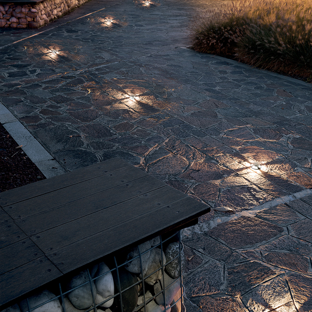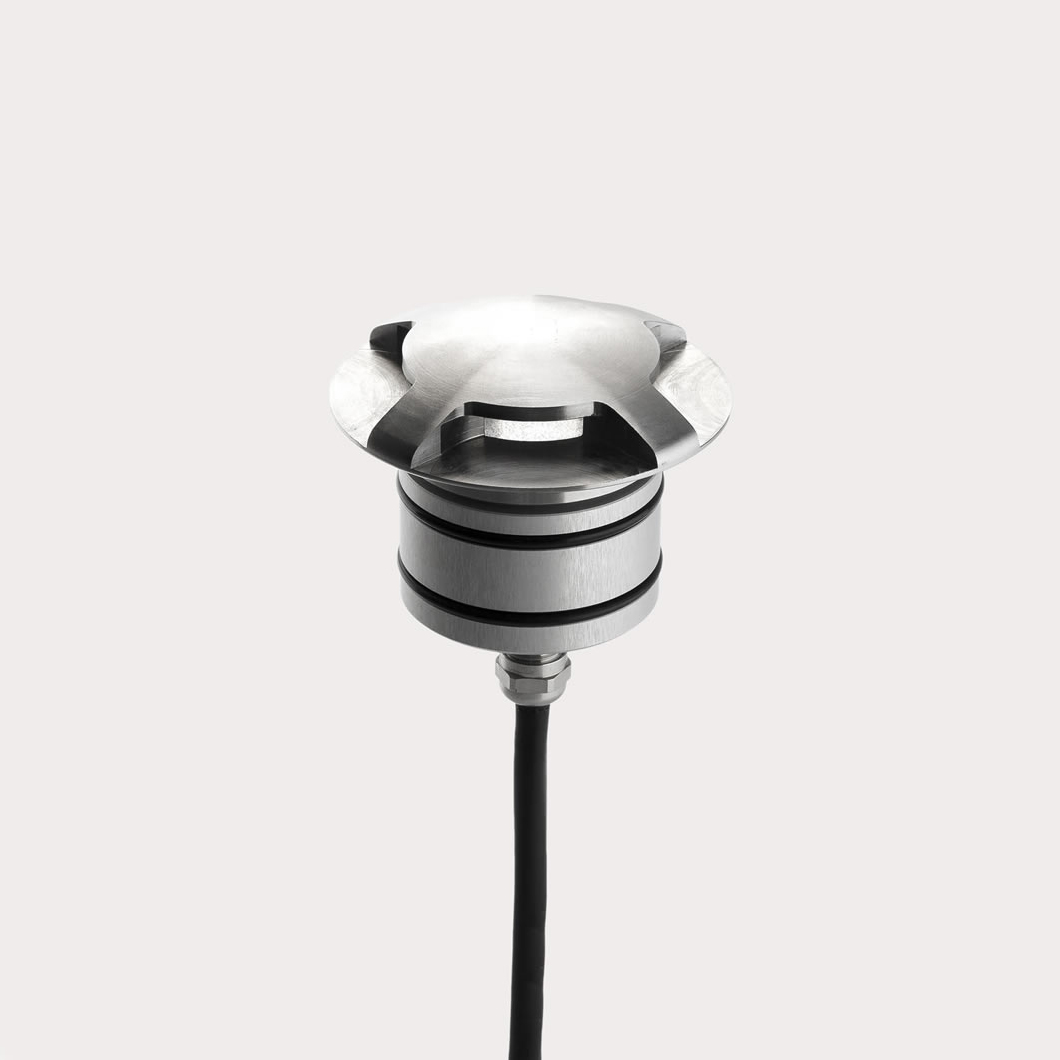Just under 8cm in diameter, the Bia Round outdoor recessed path light by LLD (LED Luce E Dintorni) has four light emissions. Twice the size of the mini version, the versatile LLD Bia is suitable for both private garden and commercial outdoor lighting projects, and can be installed in the wall as a low level or step light or into the floor as a path light. The Bia Round can be driven over up to 1500kg and has a rating of IP67.