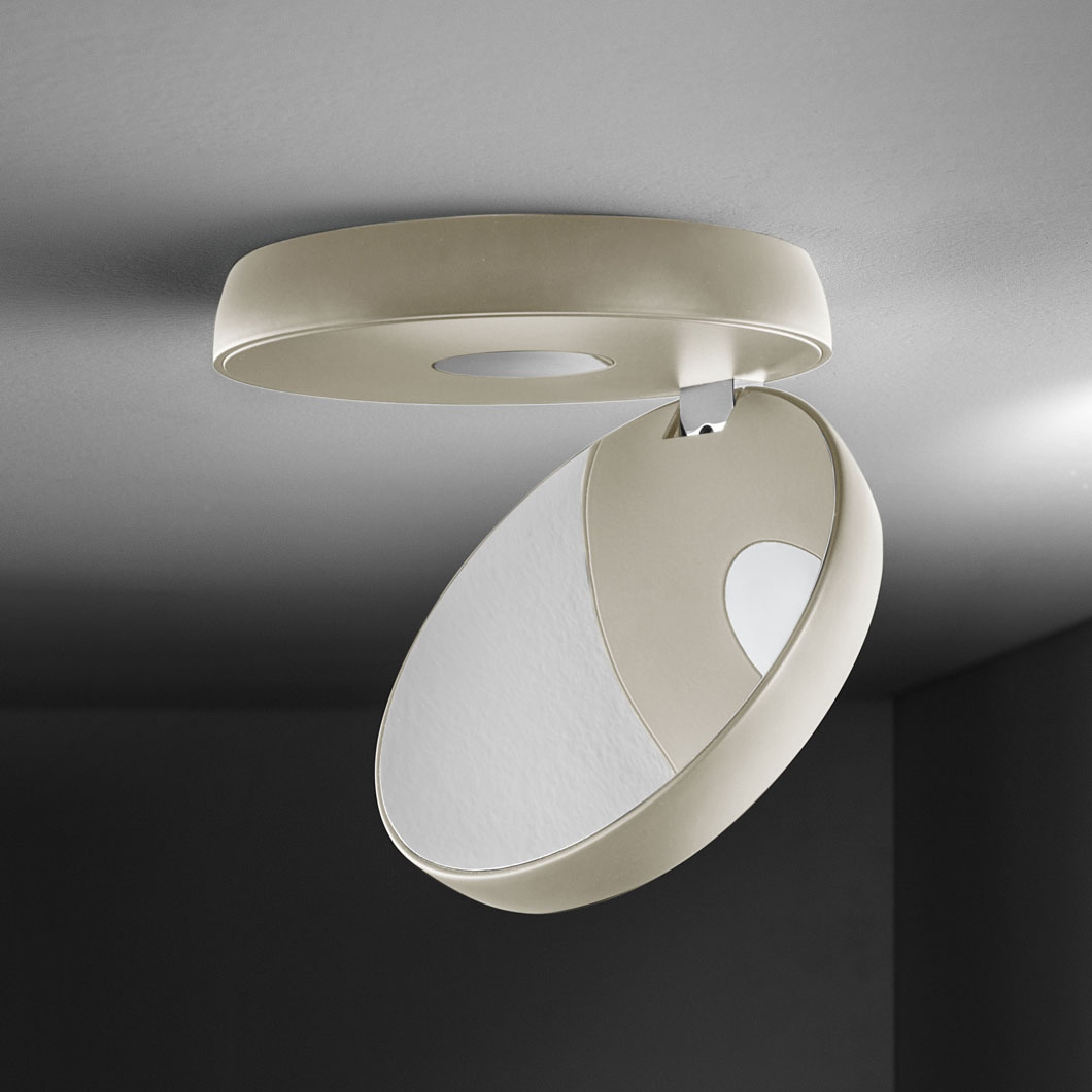 As a ceiling fixture, Nautilus fulfils a range of lighting needs from practical to cosmetic, complete with Nautilus Spot. The versatile spotlight enhances the fundamental use of the light, as it projects a clear, direct glow toward a specific area of the room. Housed inside the diffuser is an LED light which can be rotated vertically by 90°, and twisted by 340°, meaning the light beams can focus on specific objects and areas, allowing versatility for both casual and professional situations.