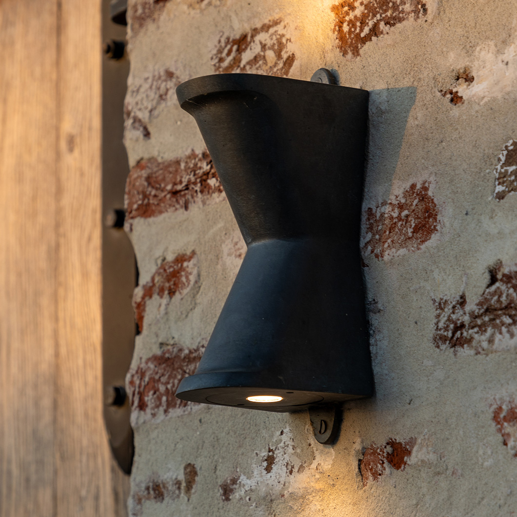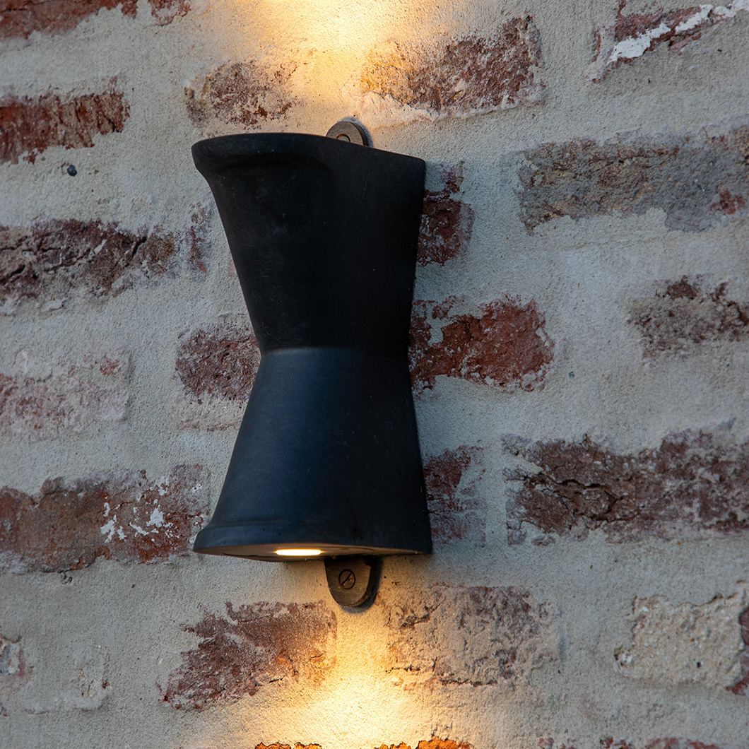 Campa Up & Down Outdoor Wall Light radiates authentic craftsmanship and sophisticated character through its durable sand-cast brass form and elegant dark bronze finish. The exterior fixture features a subtly rounded silhouette, curving outwards into a half hourglass shape. The dual-ended contemporary luminaire diffuses light upwards and downwards. Campa Up & Down does not include a driver as standard; however, a phase-dim driver is also available on request.