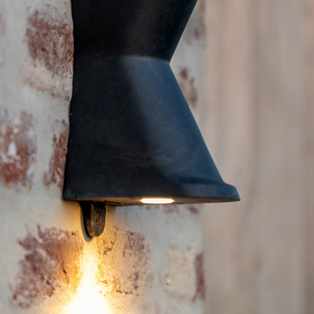 Campa's integrated LED module emits a warm-white 2700K colour temperature, diffusing light downwards from the wall-mounted fixture for a cosy, ambient glow with low-level illumination. Campa Up & Down is a sleek yet subtle addition to an outdoor lighting scheme, casting a soft warmth around a patio area or pathways along a home exterior.
