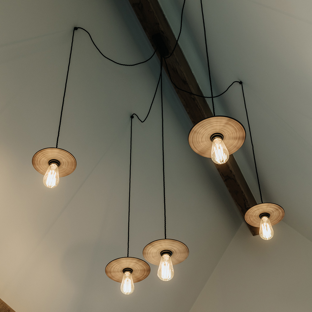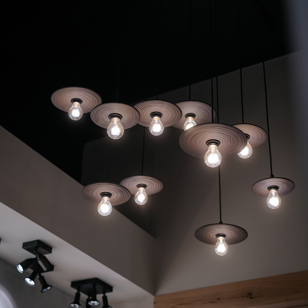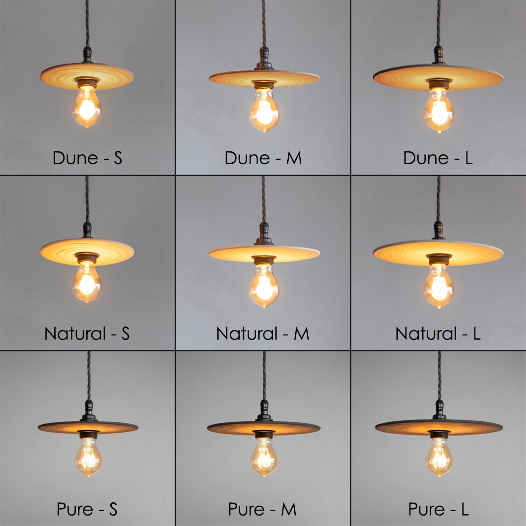 The sophisticated luminaire's earthy character is exhibited through the three neutral ceramic finishes: pure, natural, and dune. The suspension lights' round disc is also available in three sizes, adapting to your home's needs from a minimalist accent to a bolder statement piece. Alternative canopy options, including multi-pendant versions, are available on request - please contact us for more details.