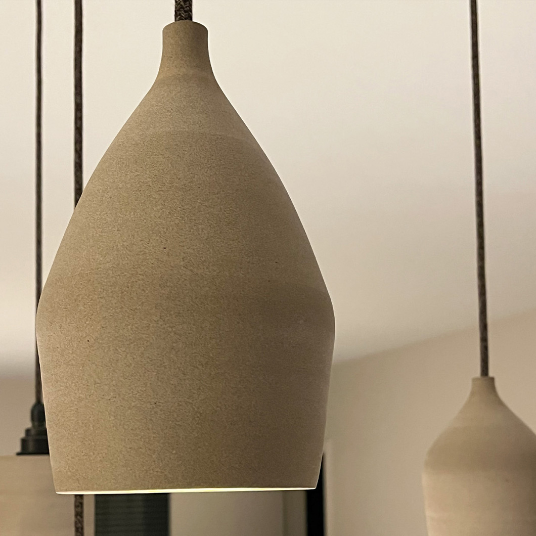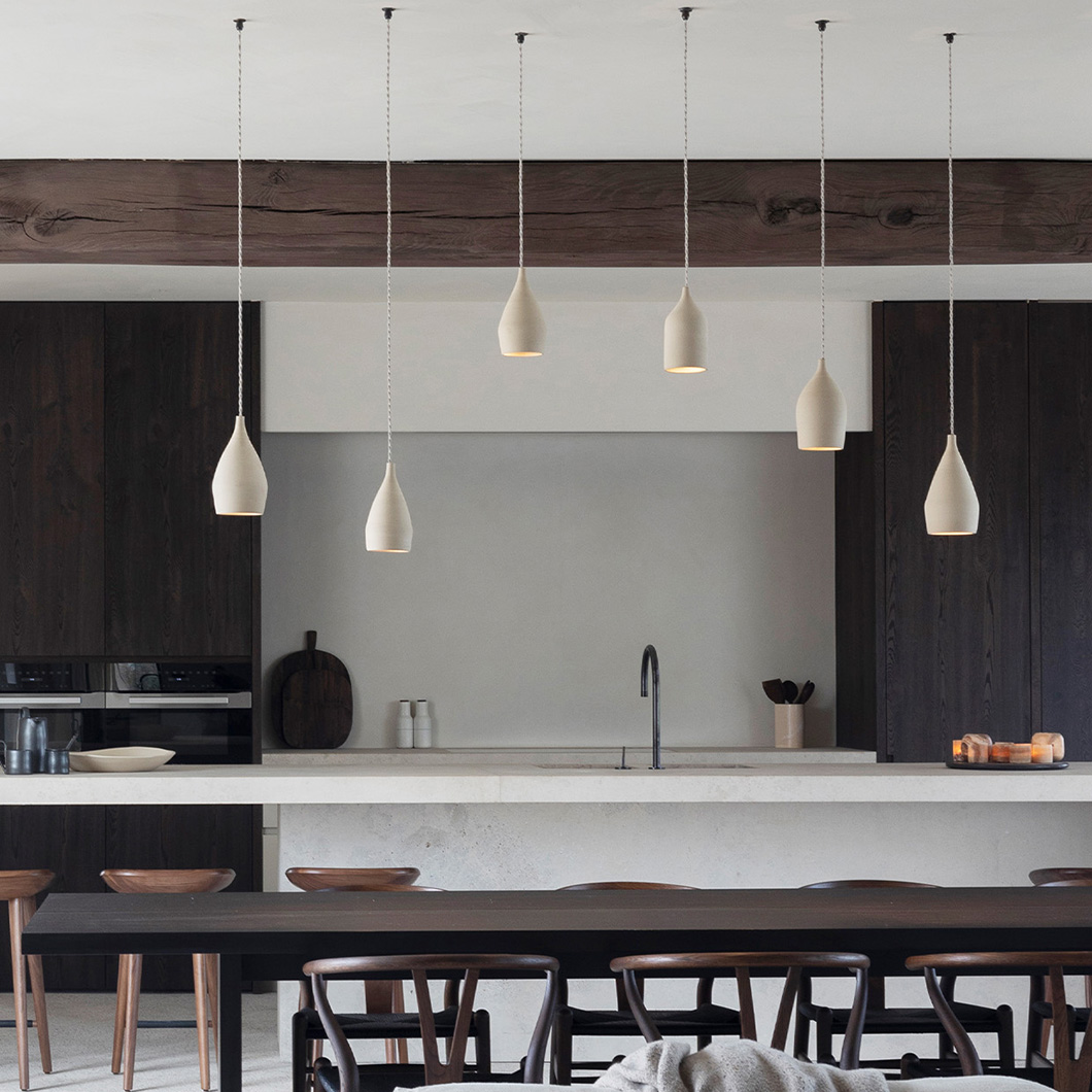 L'ombre's ceramic collection celebrates authentic craftsmanship, creating timeless, contemporary luminaires in calming neutral tones. The Refined Pendant takes on an elongated tapered shape, with each conical piece being handcrafted by passionate ceramicists. The subtle, rounded silhouette of the Refined suspension light enhances a modern space while remaining a minimalist decorative feature.
