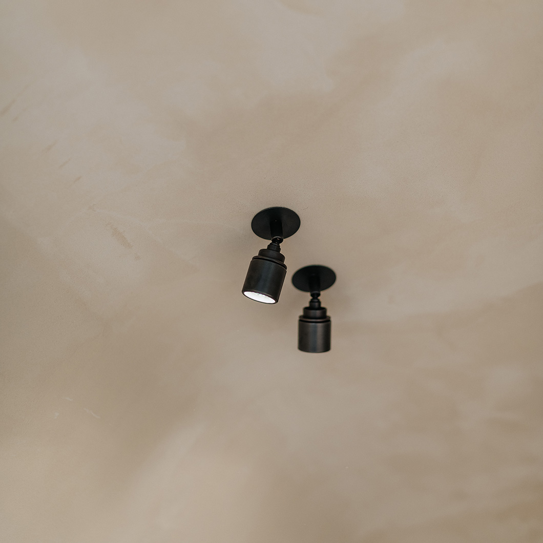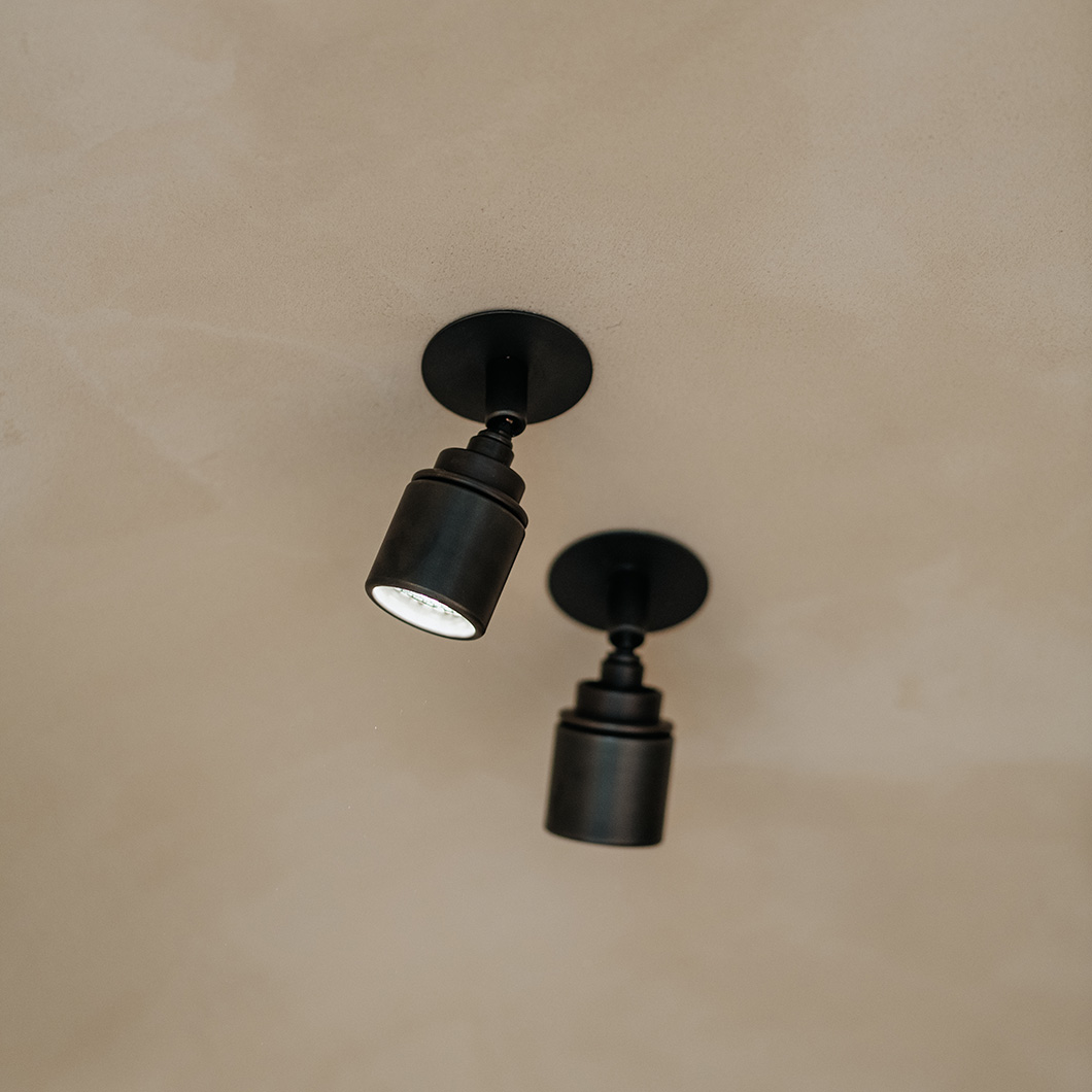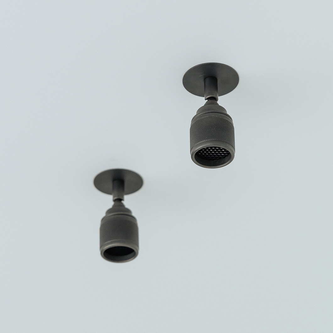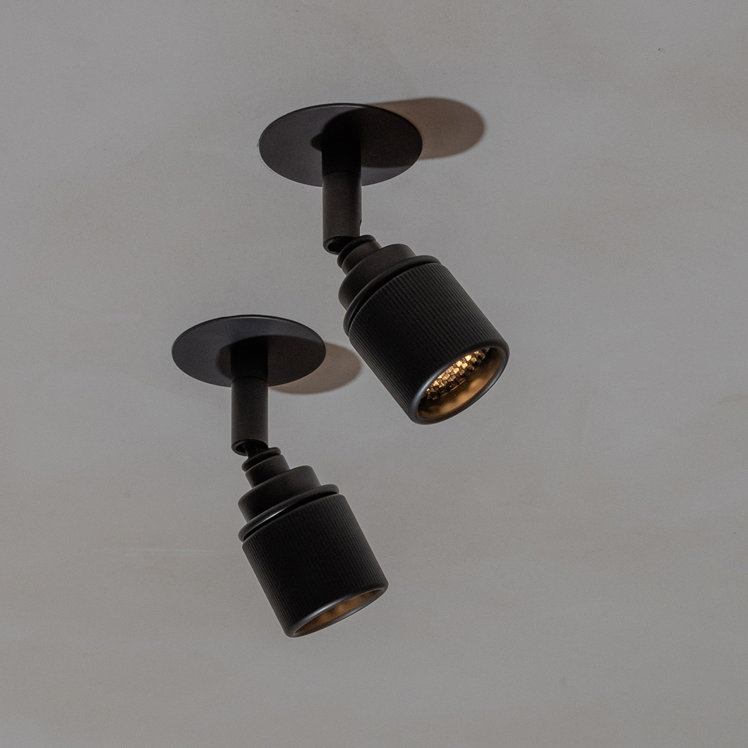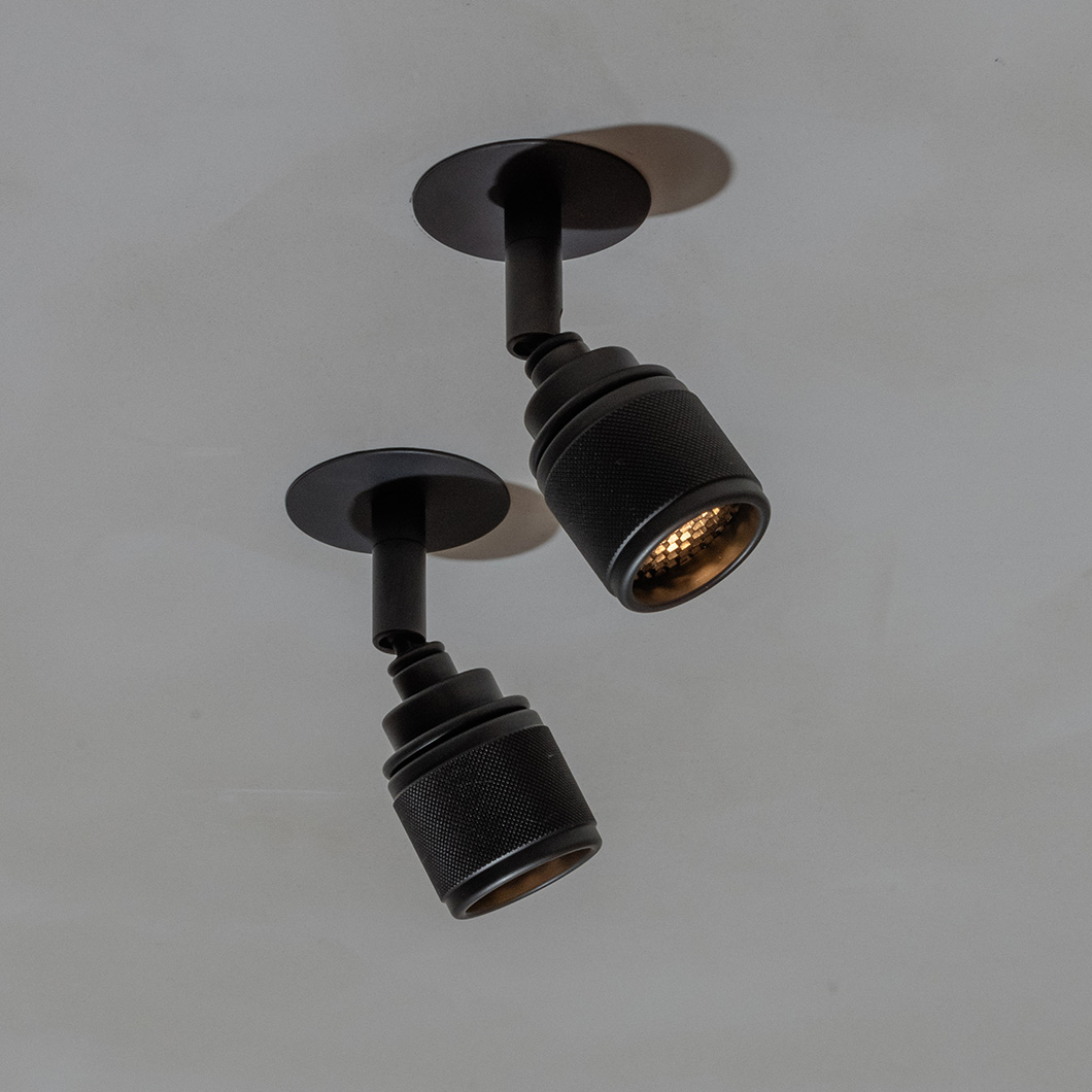 Crafted from brass, the handmade fitting offers durability and aesthetics. Lichelle is finished in an elegant dark bronze with three unique textures: finely knurled, timelessly plain, or lightly striped. A surface-mounted version of this spotlight is also available - see our 'More Like This' section below.