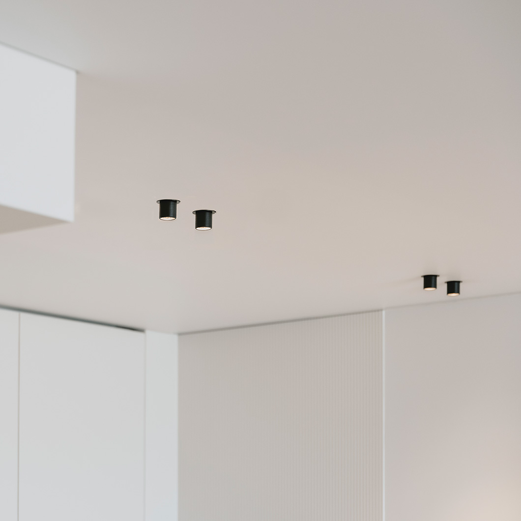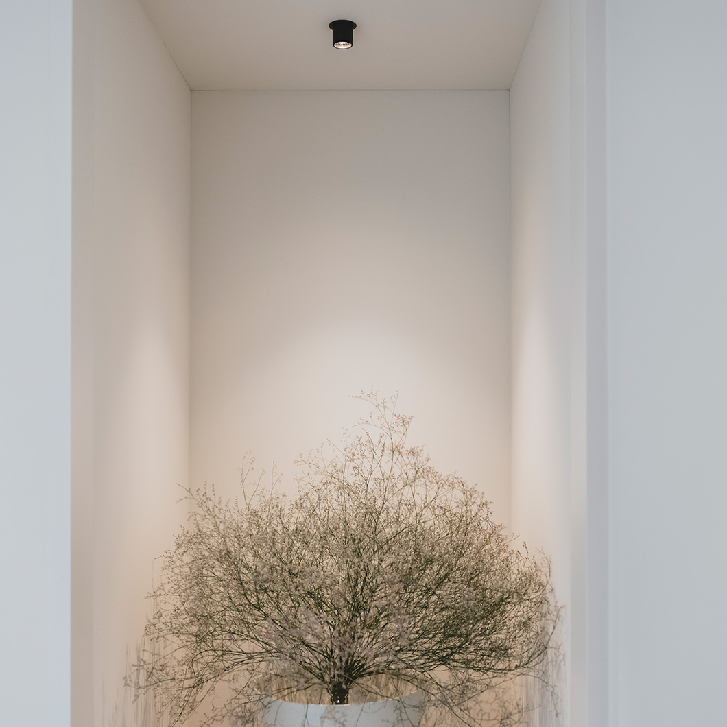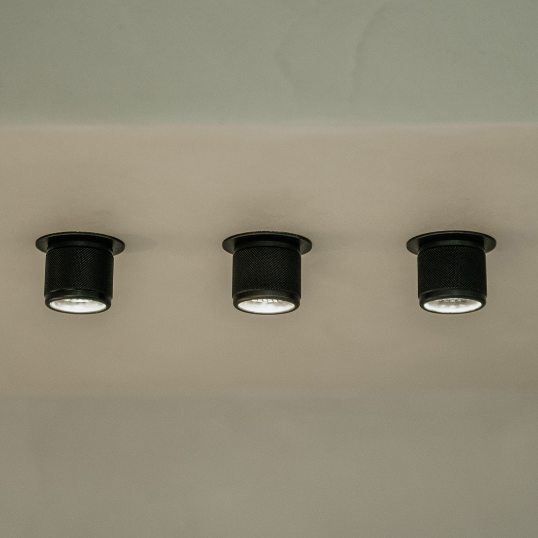 The Lichelle collection by L'ombre is characterised by its sleek, sophisticated design. Lichelle Raised is a semi-recessed downlight with an integrated LED chip, featuring a mood-enhancing warm 2700K colour temperature for soft, atmospheric lighting. The petite fixture is approximately 40mm in diameter and protrudes 36.6mm from the ceiling.
