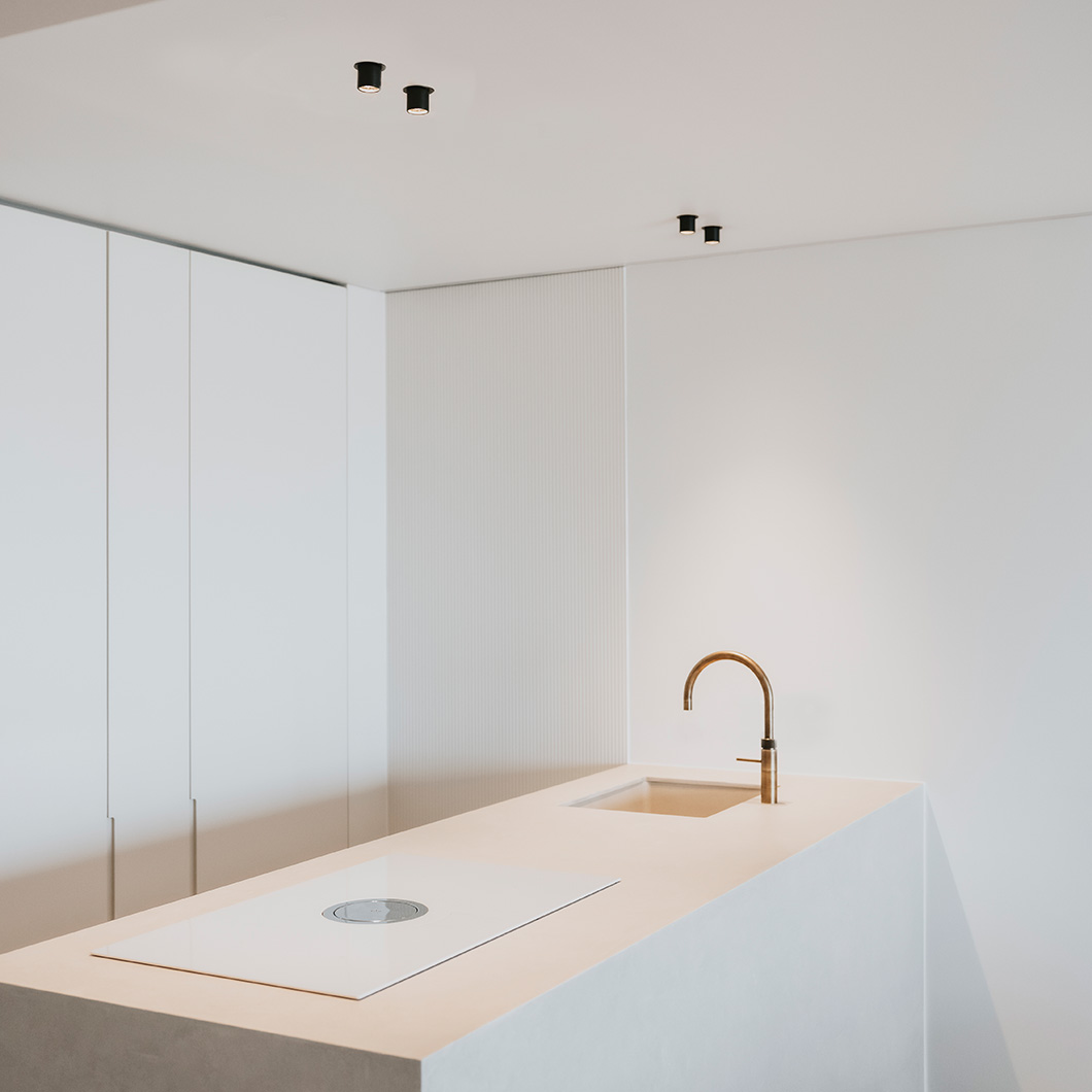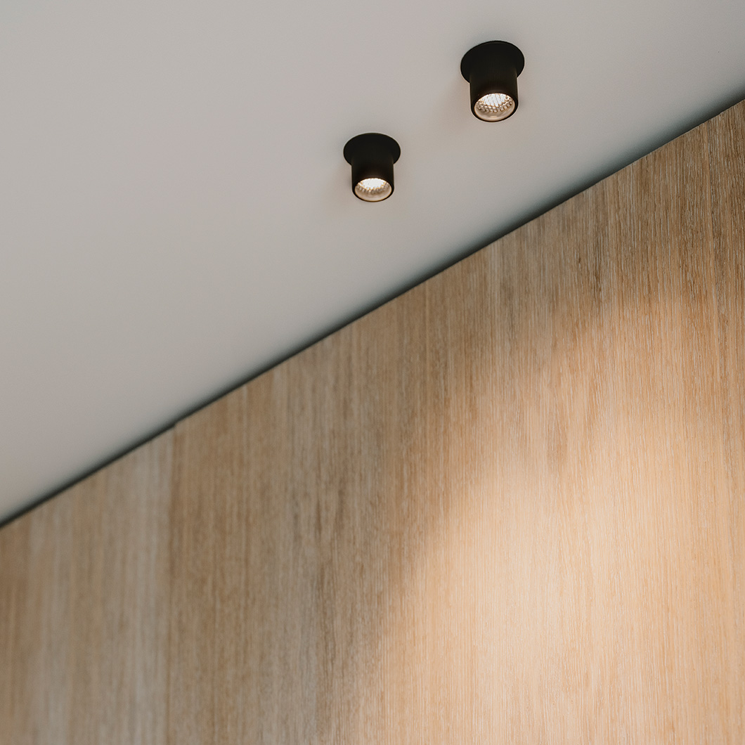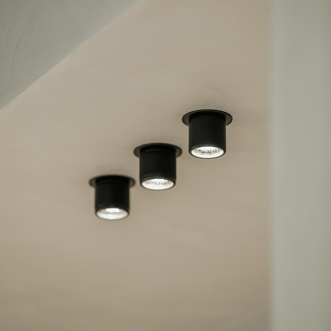 The Lichelle collection by L'ombre is characterised by its sleek, sophisticated design. Lichelle Raised is a semi-recessed downlight with an integrated LED chip, featuring a mood-enhancing warm 2700K colour temperature for soft, atmospheric lighting. The petite fixture is approximately 40mm in diameter and protrudes 36.6mm from the ceiling.