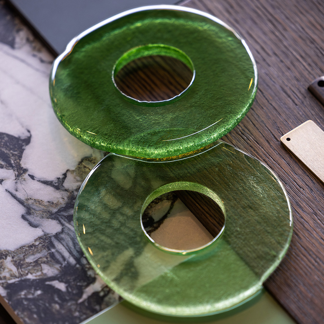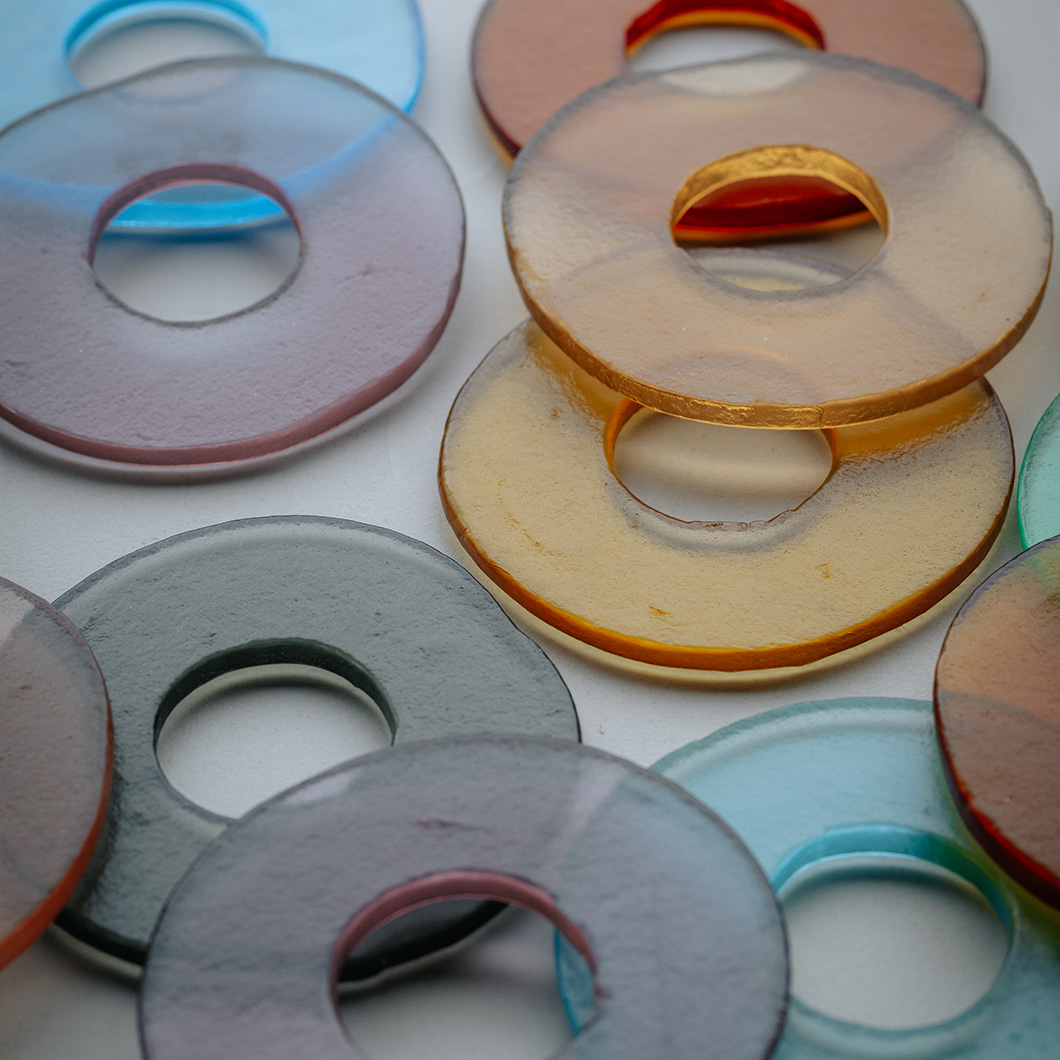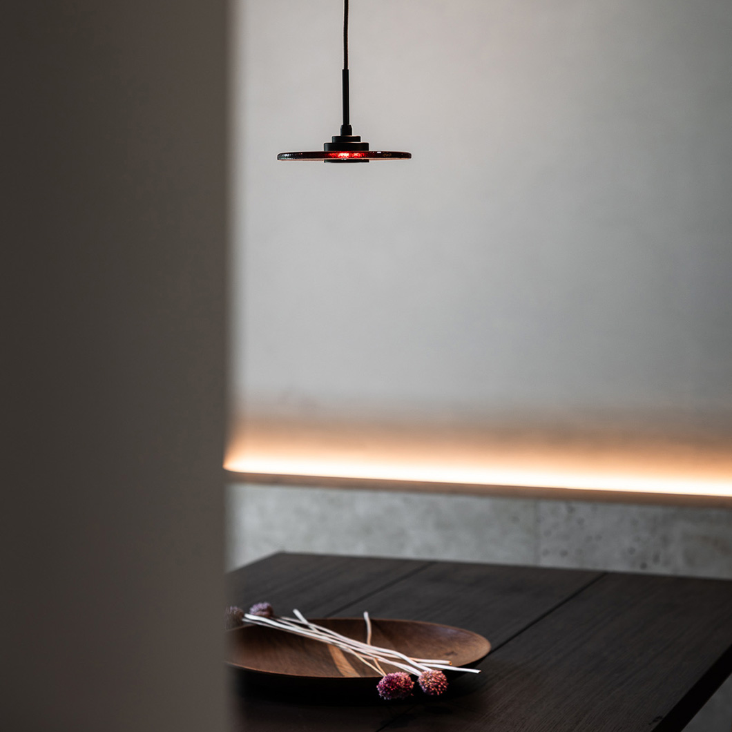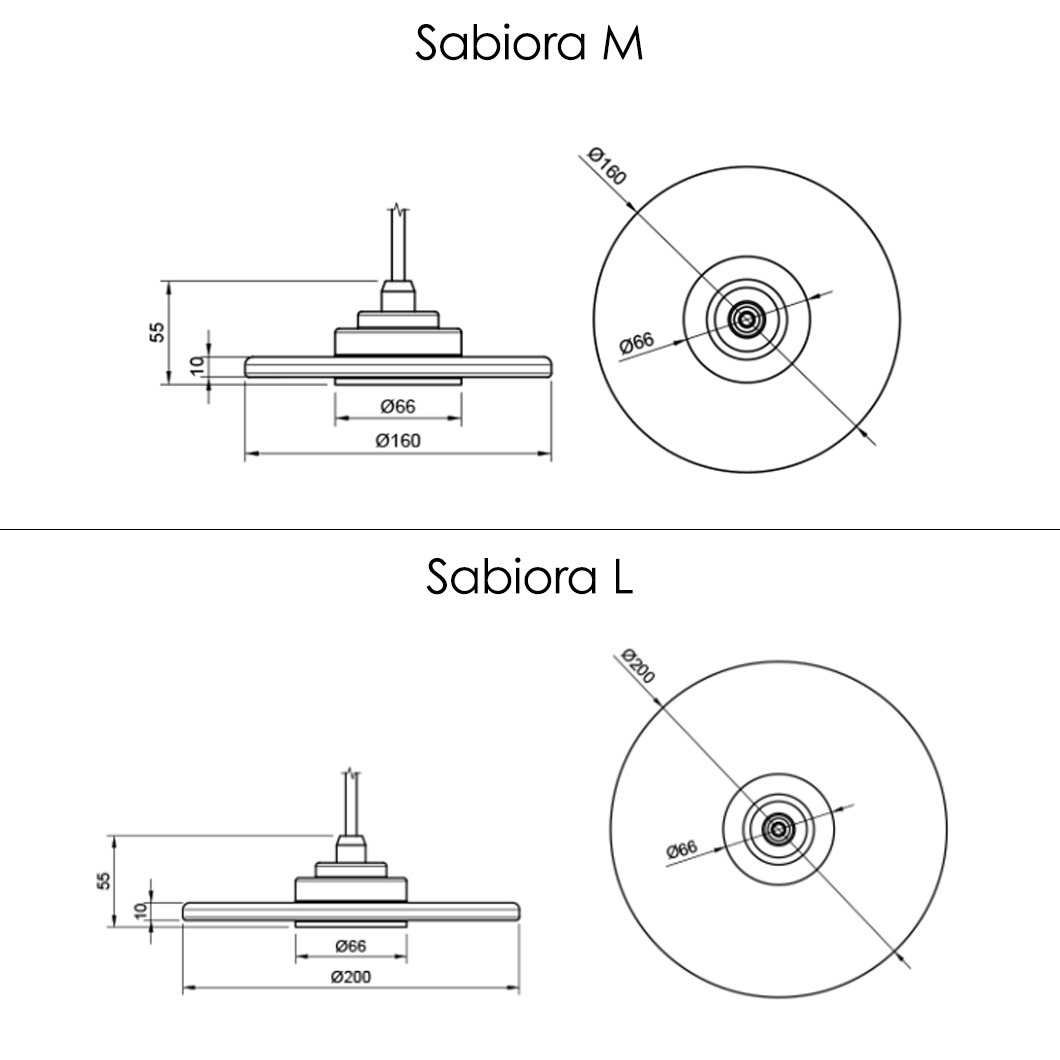 Choose from a plethora of glass finishes to create the perfect match for diverse interiors: ginger, amber, cognac, blush, plum, smoke, indigo, lemon, meadow, or lagoon. Sabiora is available in a medium Ø160mm disc for a more subtle accent piece, or a large Ø200mm disc for a statement feature in the home. Combine the various sizes to create a harmonious focal point or install a row of the modern drop lights above a kitchen island.
