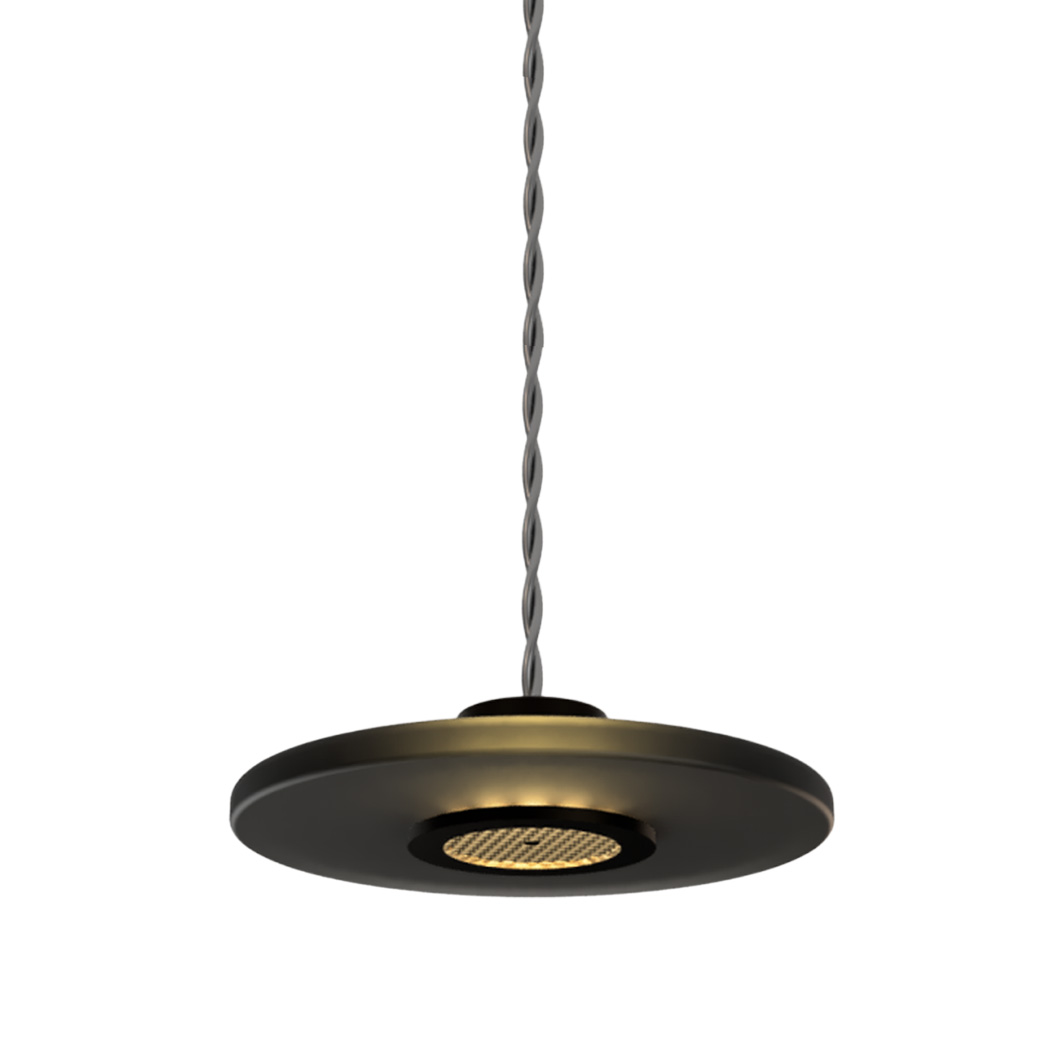 Combining sleek design with artisan cast glasswork, Sabiora showcases a uniquely decorative aesthetic. The contemporary suspension light features a circular glass disc secured to a dark bronze metal core. Sabiora's minimalist form shows how simplicity can still elevate and add depth to an interior space. The integrated 2700K LED provides a soft, ambient glow to enhance the home.