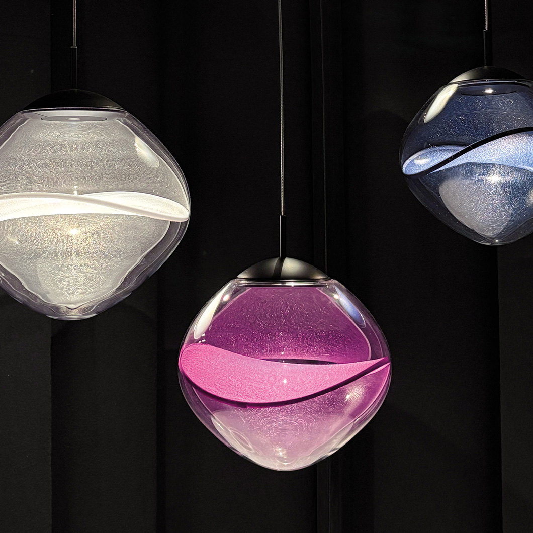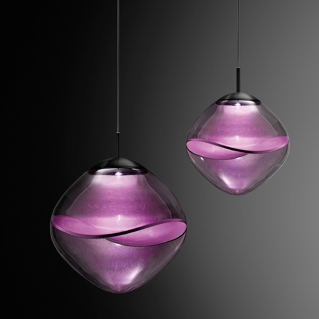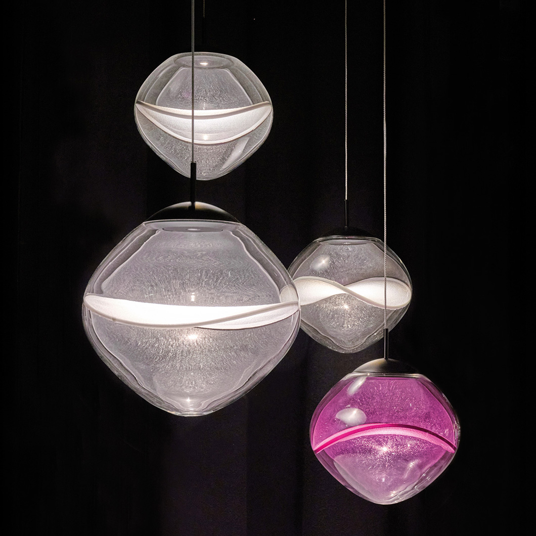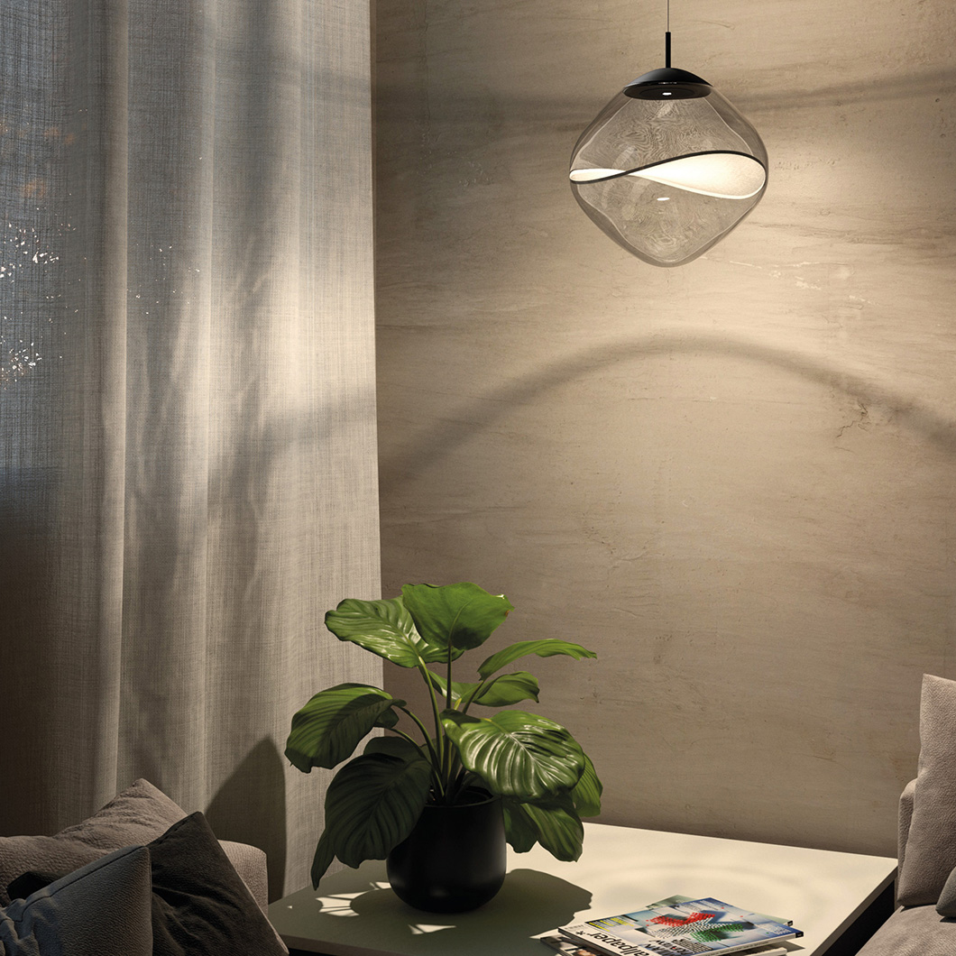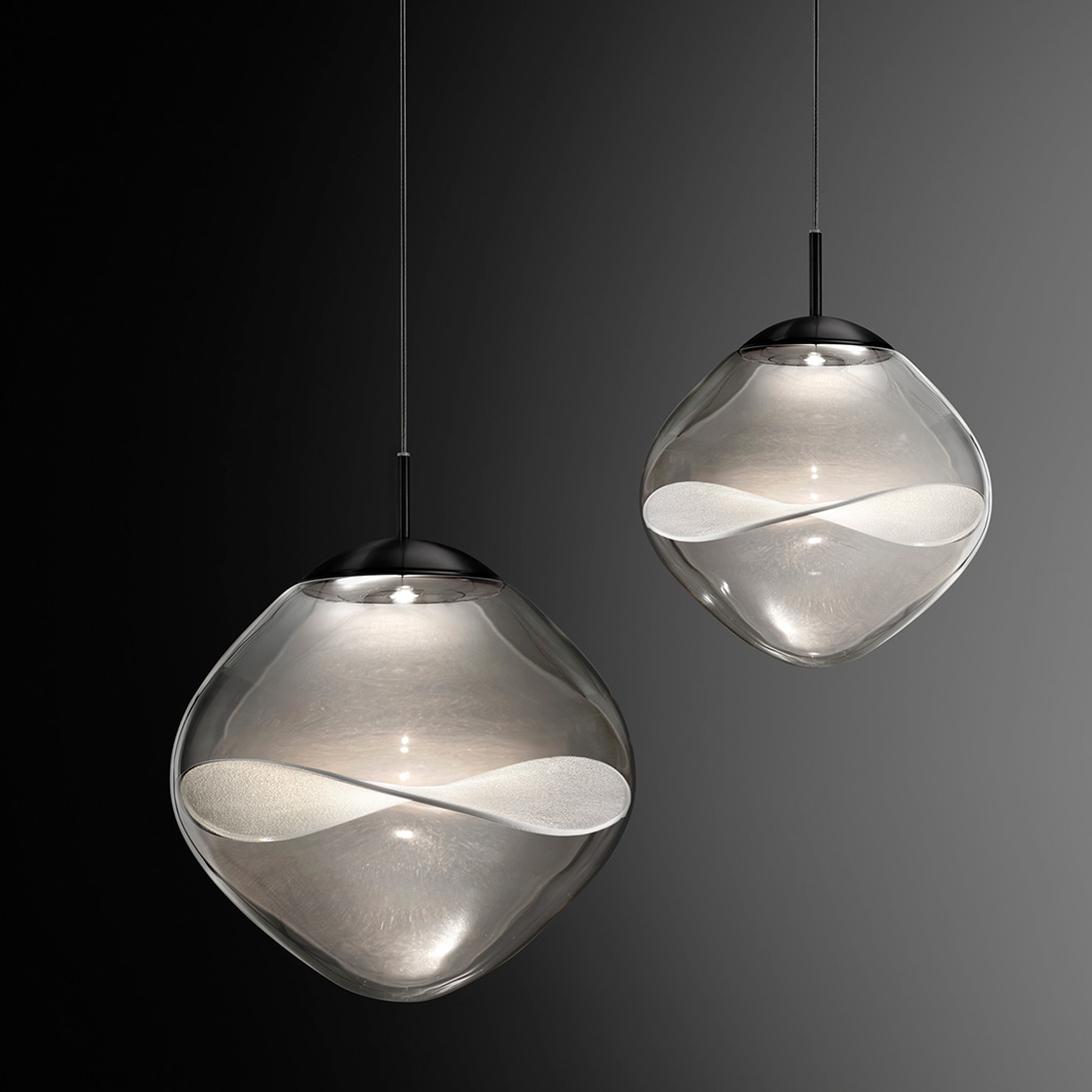 The Aether LED Pendant by Lumina exhibits pure, minimalist elegance with unique decorative details. Crafted from transparent borosilicate glass, the rounded diffuser houses a delicate Japanese organza petal, offering a level of transparency and light reflection that enhances the natural texture of the fabric and creates a soft interplay of light and shadow. The contemporary suspension light fuses innovative design, technology, and craftsmanship to provide an ambient, stunning luminaire.