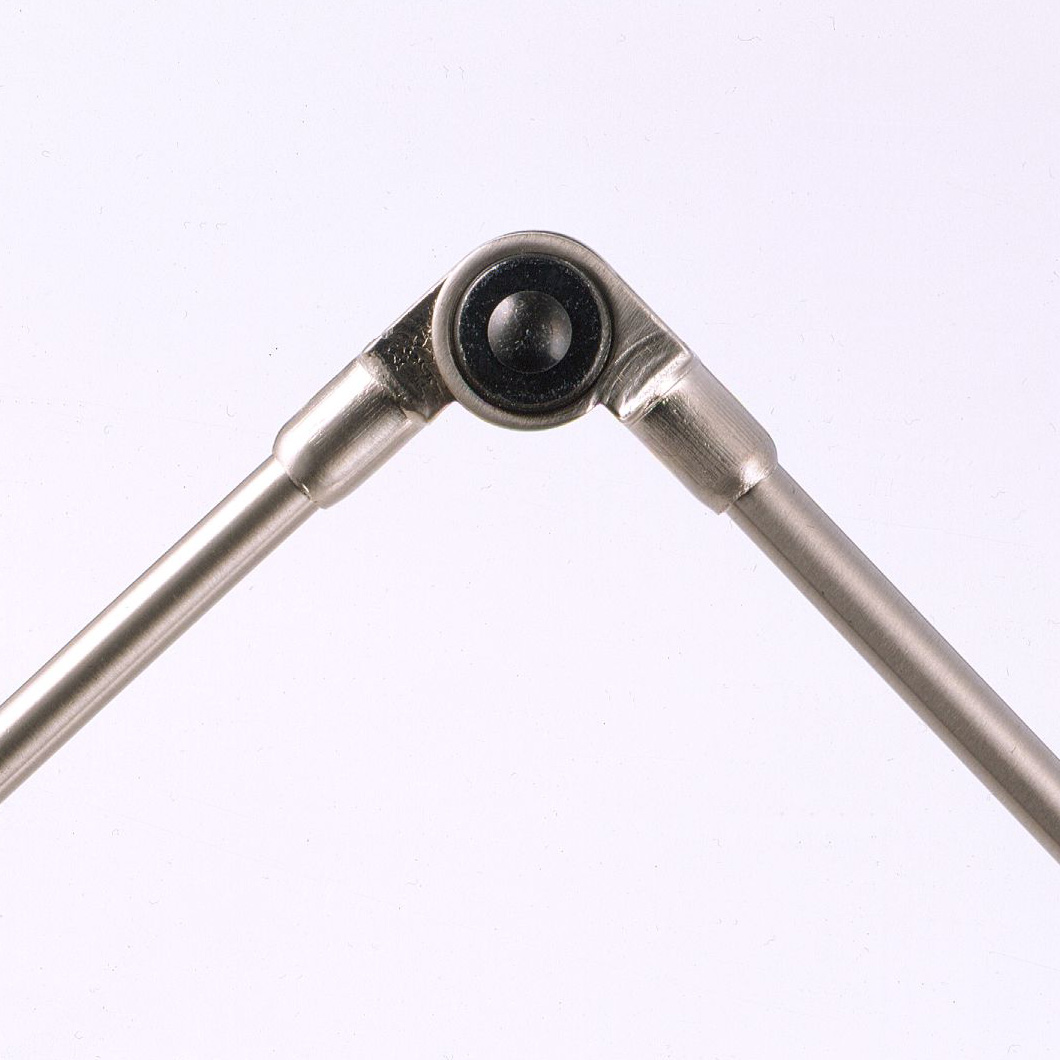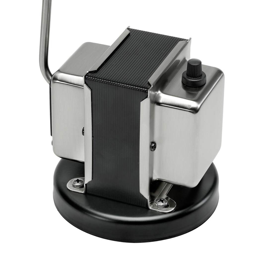 Essentially a beautiful representation of a 360° pivoting diffuser on an articulated arm, mounted upon a transformer, Daphine is available with a two step switch or dimmable version. Finished in black, matt white, bronze, chrome and brushed nickel with the base in cast iron varnished black. 50W Gy6.35 halogen lamp included.