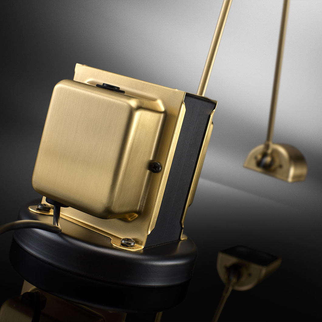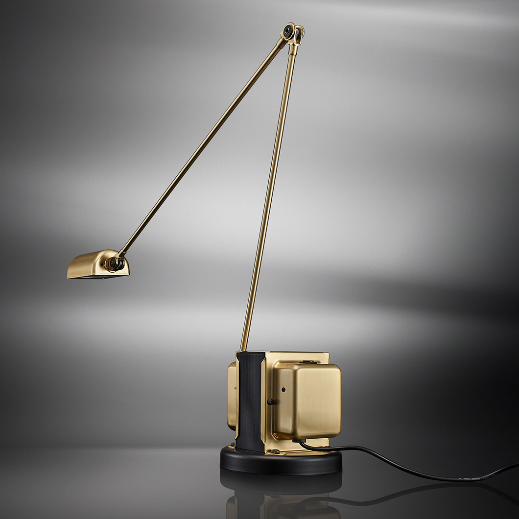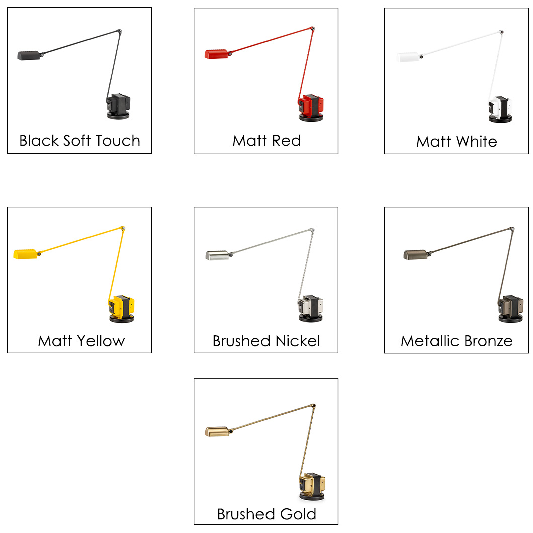 Essencially a beautiful representation of a 360° pivoting diffuser with LED heat sink on an articulated arm, mounted upon a transformer, Daphine LED is has a two step switch and dimmer which allows for total control of the light source. The traditional finishes of black soft touch, matt white, metallic bronze, and brushed nickel have been added to with the funky matt red and matt yellow for a more modern look. A brand new special semi-gloss brushed 'yellow gold' finish is now also available for this iconic lamp. The special gilding treatment, which accentuates the brilliance of the finish, is certified to contain a thin film of pure 24-carat Gold applied by electrochemical deposition.