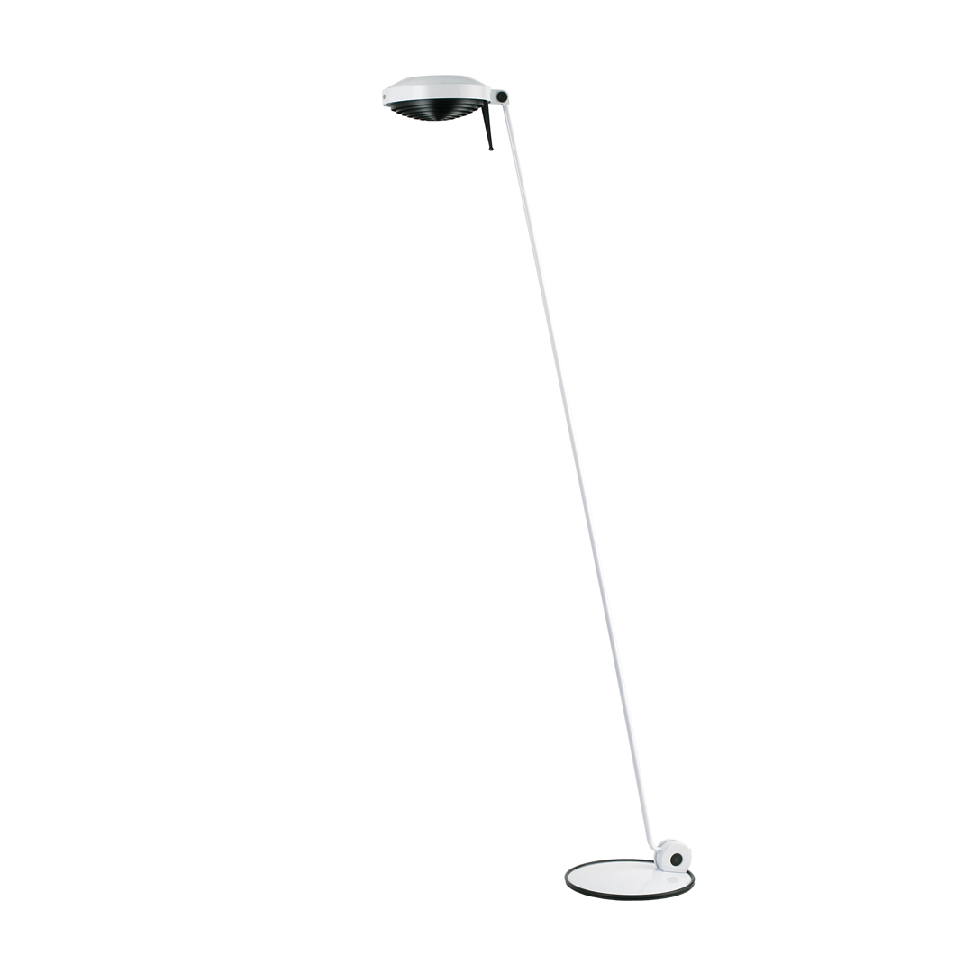 Minimal and functional, the Lumina Elle 1 floor lamp offers direct and indirect lighting with single arm. With a srong industrial style, Elle 1 has an adjustable reflector and arm, with a screen grid for glare control. Dimmer control on the cable. Halogen lamp included.