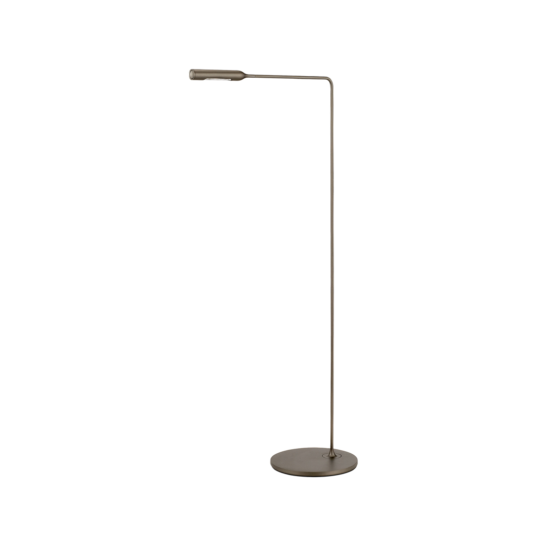 Available in black soft touch, matt white, matt red, matt orange, matt yellow, matt cyan, matt green, bronze metal paint, gunmetal and brushed nickel. The minimalist and timeless Lumina Flo can be placed next to a sofa, armchair or desk and serve as a reading light, with a 6W integrated LED and a sleek two step switch in the head - one click for full brightness and two clicks for 50% intensity. The Flo LED Floor Lamp is slightly taller than the Flo Lounge version, with a higher power LED.