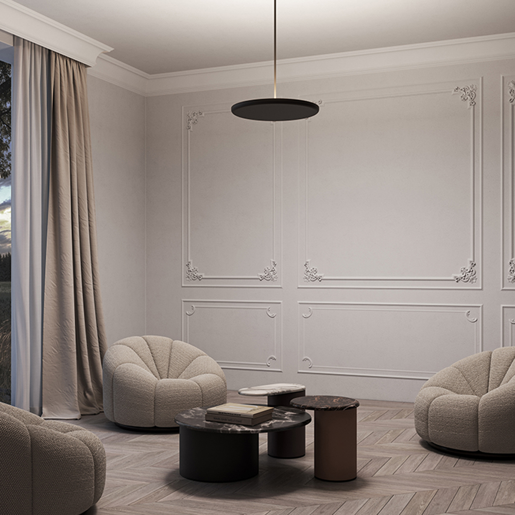 LYM's Moon pendant is a unique and beautifully minimalist pendant. A great choice for contemporary living spaces, bedrooms, lounges, bathrooms and dining areas. LYM's design studio in historic Northern Italy works from an innvoative philosophy, creating lighting solutions with high usability. Moon is able to project a warm glow of light onto the ceiling, using its round metal structure to diffuse the light upwards, whilst maintaining a sublte moon like look from below.