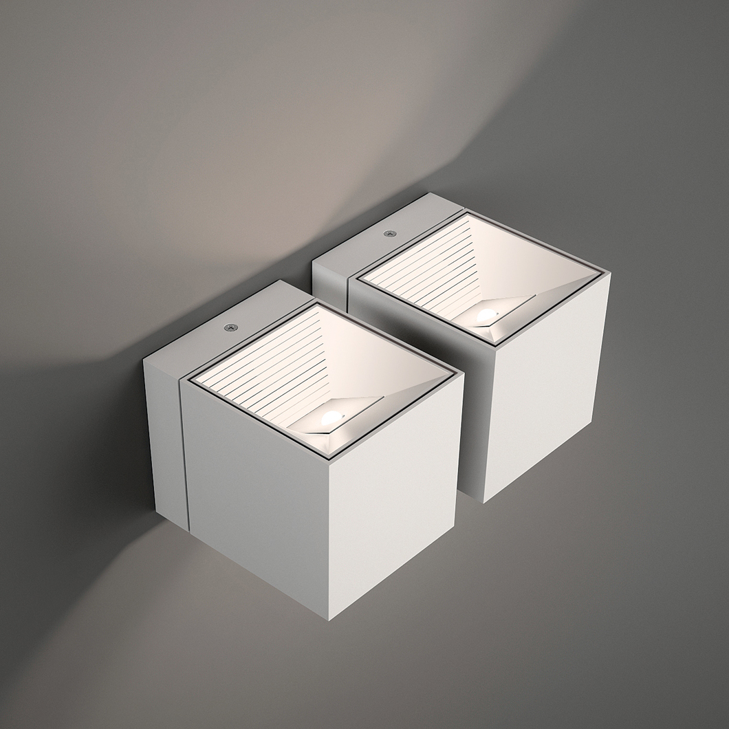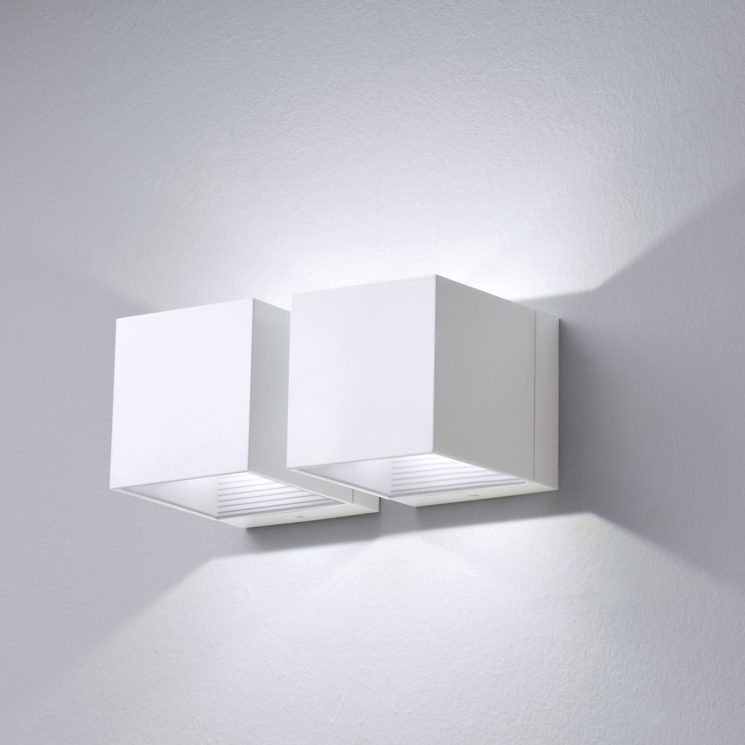 The Milan Iluminacion Dau LED Double Up & Down is a twin wall light utilizing both up and downlight, housed in a sleek cubed design. Fully dimmable, this light is available in white (6829), aluminium (6827) or black aluminium (6828).