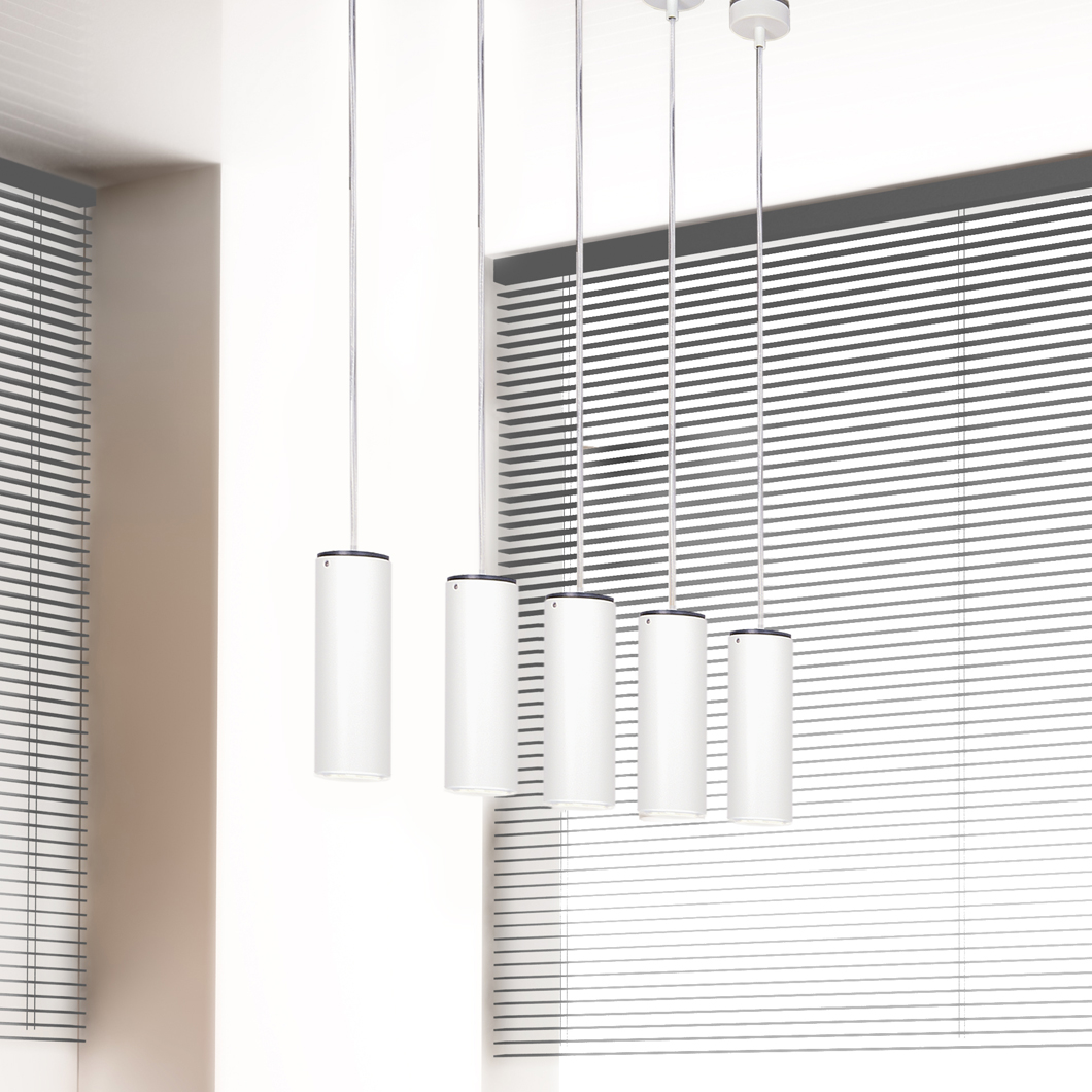 The Milan Iluminacion Kronn is a pendant features a minimalist yet sleek tubular design. Finished in black (4239), chrome (4238) or white (5239). Available in standard ceiling fixing or rail fixing.