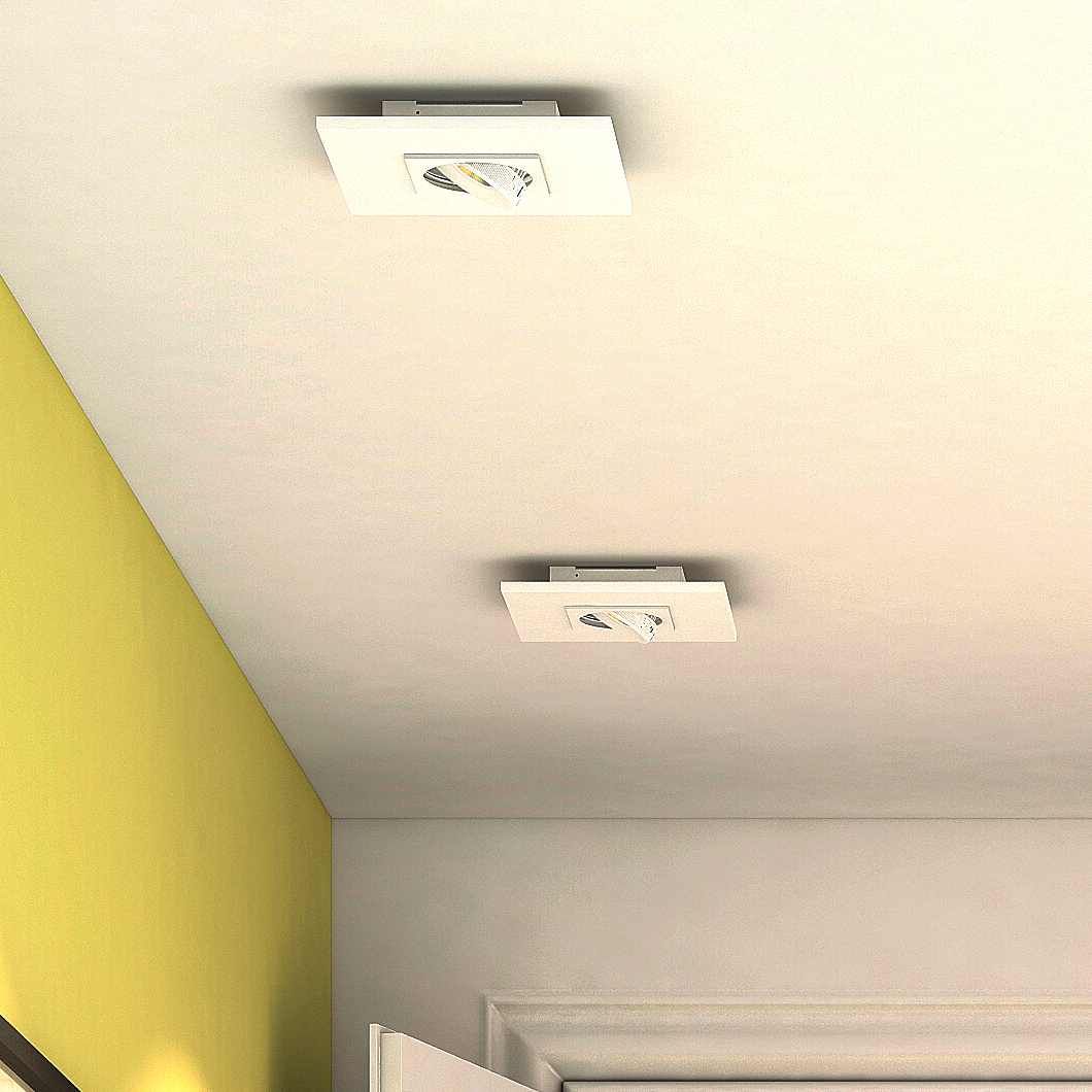 Milan Iluminacion Marc single LED ceiling light, rotatable by 350º and adjustable by 30º. Finished in white lacquer. Available in 2 sizes - a single lamp version (3366) or double lamp version (3367).