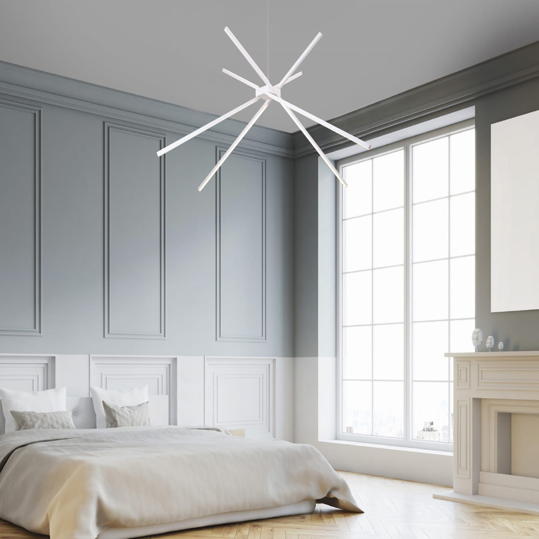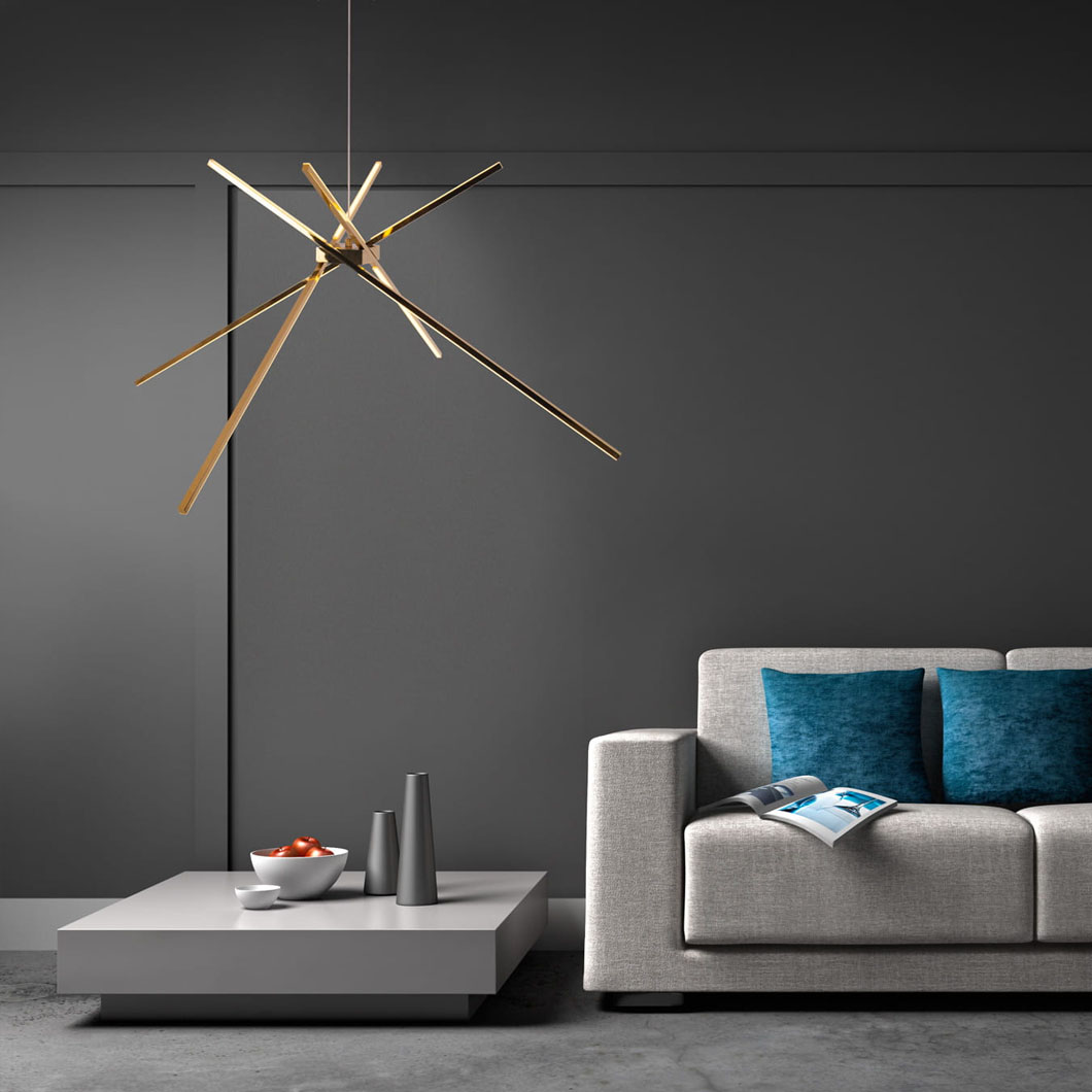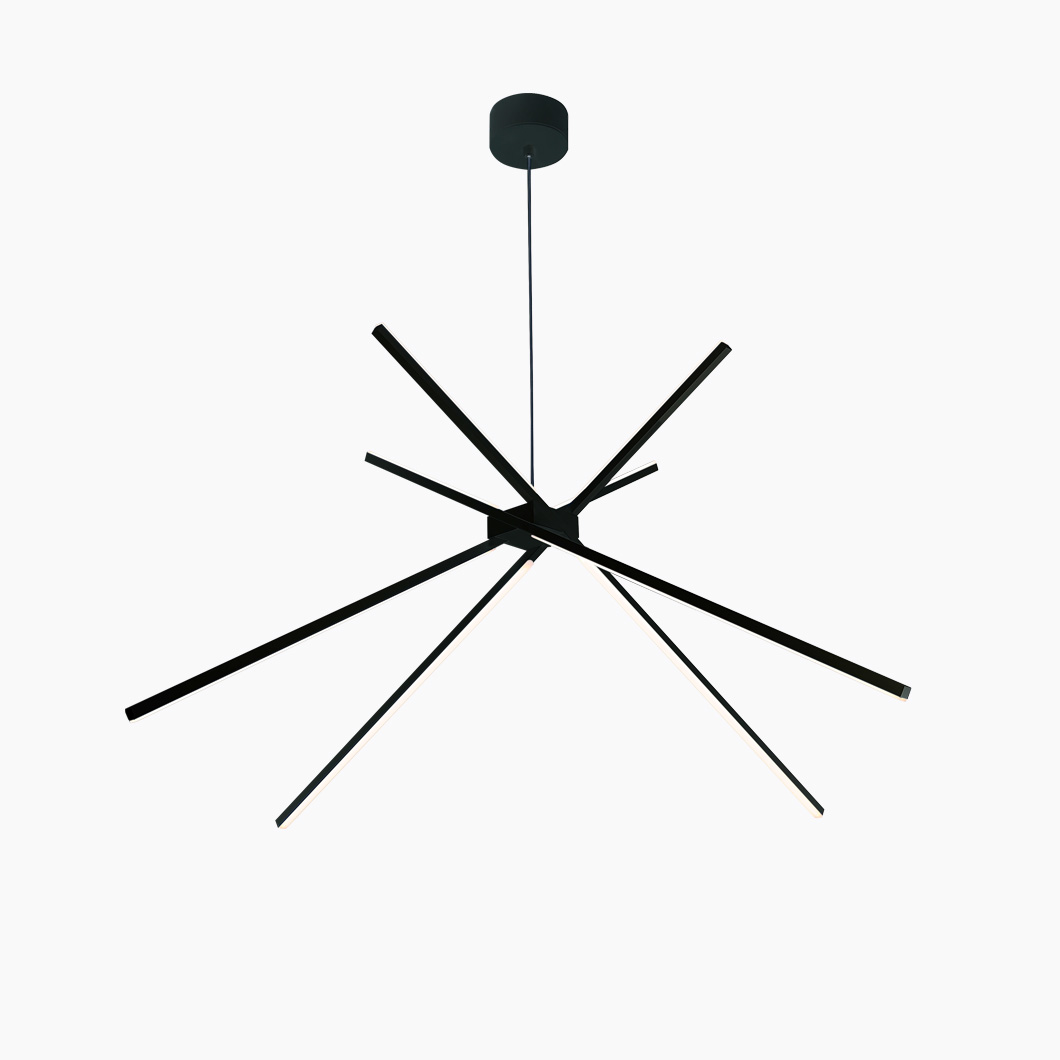 Beautiful in its artistic clustered design, the Spider pendant from MX Light brilliantly encapsulates the intricate aesthetic of a spiders' legs. This stunning structure is comprised of four linear LED profiles crafted from metal. These luminaires intersect at the pendant base, combining to create a raw and natural composition of lighting.