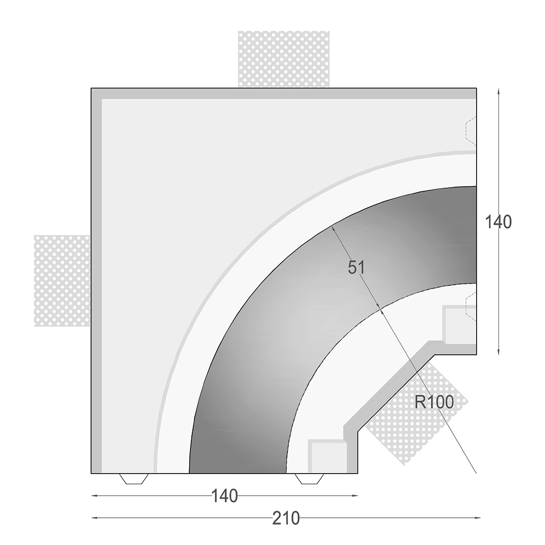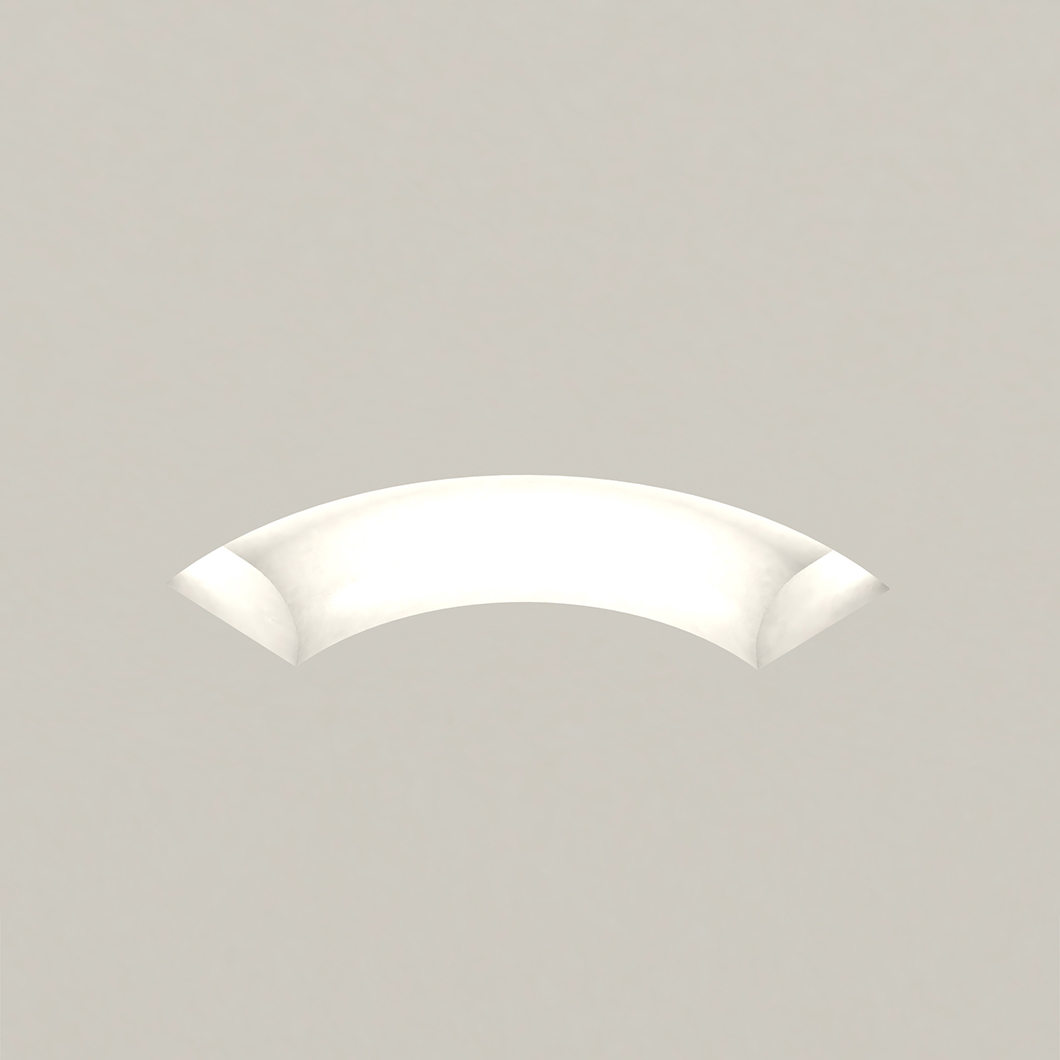 Similar to the Curve R100 In, the Nama Athina 07 Curve R100 Out Modular Plaster In Profile has a quarter-circle curve with a 10cm radius and the light source on the outside of the corner, and is used with the other modular components to create bespoke linear LED lighting. Athina can be used in the wall or ceiling, and is plastered-in to match the architectural design seemlessly. A made-to-measure integrated linear lighting solution with almost limitless possibilities, Athina is made with a natural hard wearing plaster. The profile is in aluminium which acts as a heat sink to stop any chance of the LED strip overheating. A curved polycarbonate diffuser is supplied with the fitting, which emits a soft and gentle spread of light instead of a harsh line.