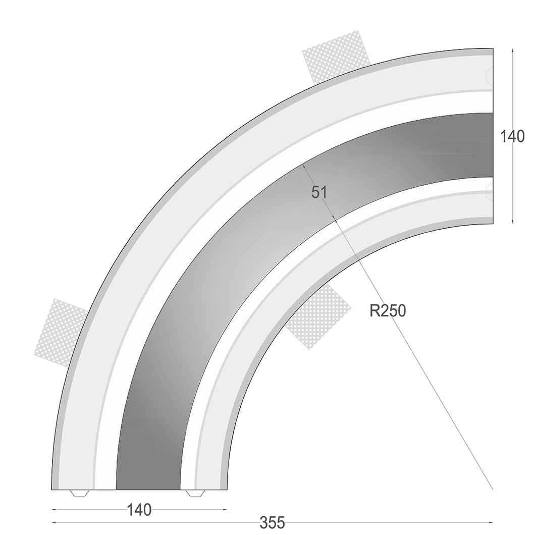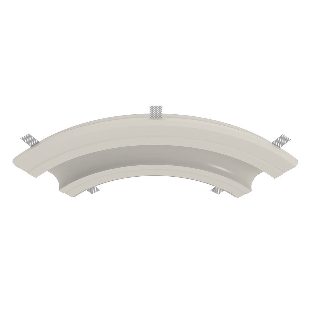 A quarter-circle curve with a 25cm radius and the light source on the outside of the corner, the medium sized modular Nama Athina 08 Curve R250 Out Plaster In Profile is used to create bespoke linear LED lighting with the other modular components. Athina is plastered-in to blend seamlessly with the architectural design, and is made from natural hard wearing plaster. The profile is in aluminium which acts as a heat sink for the LED strip. Creating custom-made integrated lighting schemes with almost limitless possibilities, Athina is suitable for wall or ceiling installation. The plaster-in fitting comes with a polycarbonate diffuser to ensure a soft and smooth light emission.