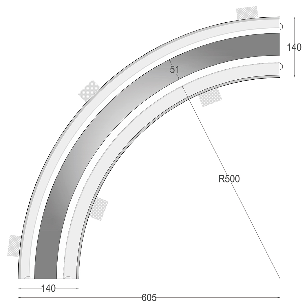 With a 50cm radius and the light source on the inside edge, the Nama Athina 09 Curve R500 In Plaster In Profile is the largest of Nama's modular quarter-circle curves. Athina is plastered-in to integrate seamlessly with the architectural design, and is suitable for wall or ceiling installation. Creating bespoke linear LED lighting schemes that are almost limitless, Athina is made from natural hard wearing plaster with the profile in aluminium to act as a heat sink for the LED strip. A polycarbonate diffuser is supplied which ensures a soft and gentle light effect.