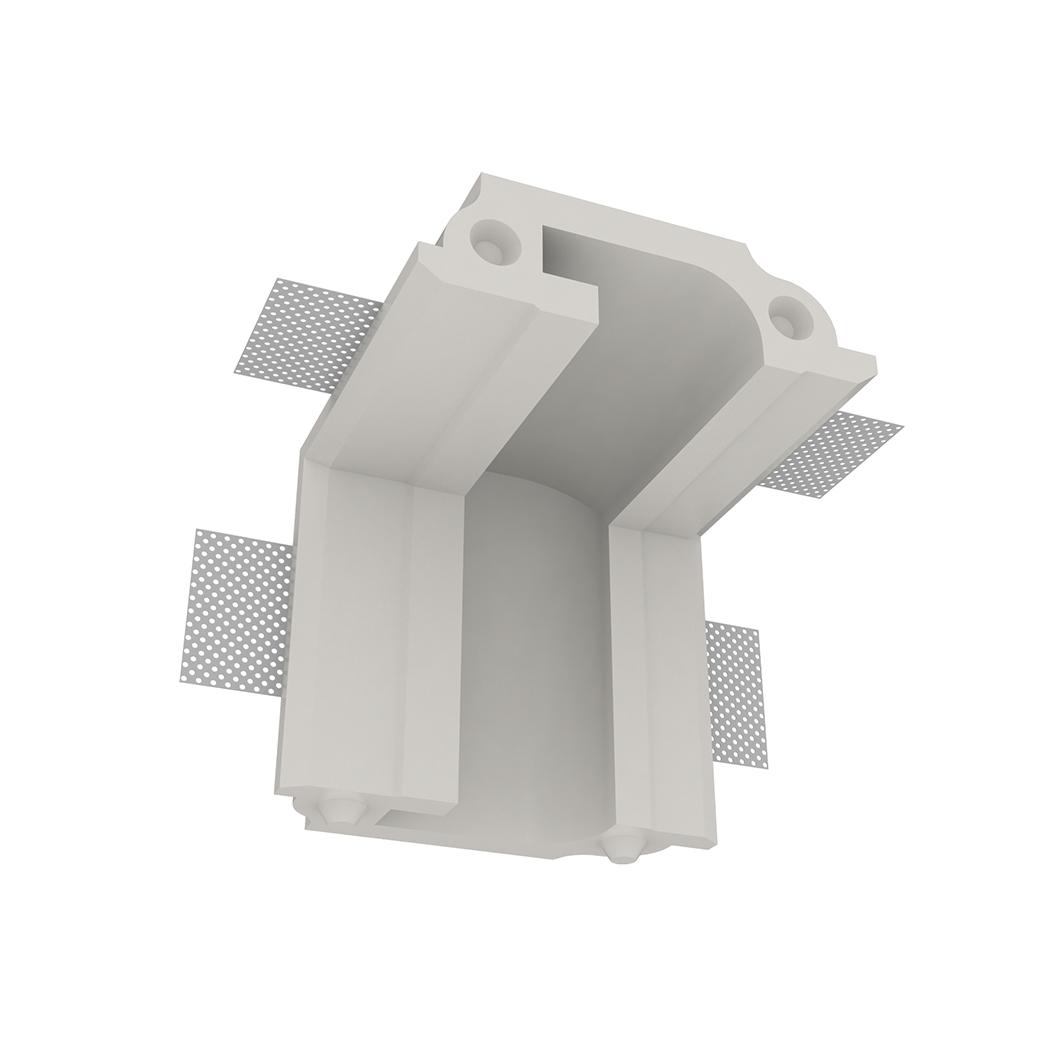 A modular 90 degree corner designed specifically for joining integrated linear lighting from the ceiling to the wall, the Nama Athina 10 Wall-to-Ceiling Profile is used with the other modular components from the family. Creating bespoke lighting schemes with almost limitless possibilities, Athina is made from natural hard wearing plaster with an aluminium profile to act as a heat sink for the LED strip. Athina is plastered in to match the architectural design, and is supplied with a polycarbonate diffuser which emits a smooth spread of light from ceiling to wall.