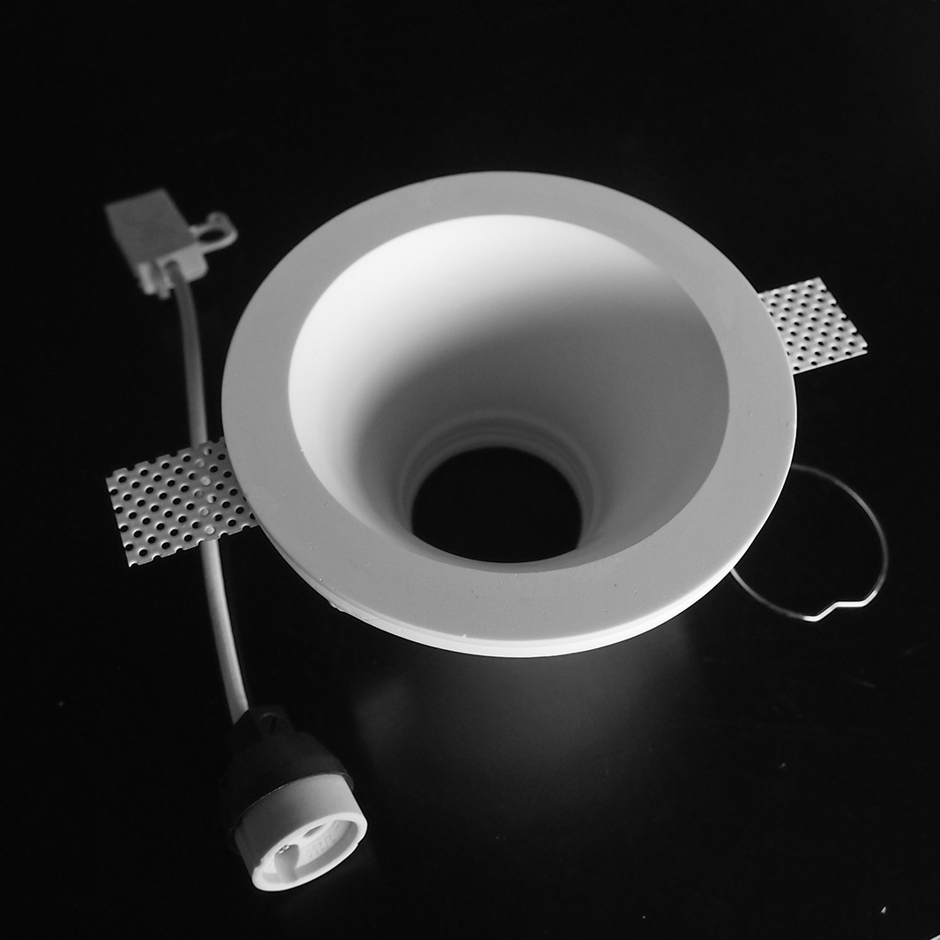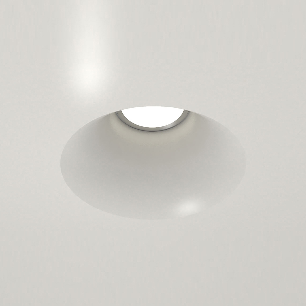 Perfect for creating a contemporary style that blends into the ceiling, the Nama Fos 03 round recessed plaster-in downlight is specifically designed for the job. Featuring a round design with a round edge that curves seamlessly into the architecture, Fos 03 is made from natural hard wearing plaster. Once Fos has been fully installed and plastered into the ceiling, it can be decorated to match with the interior colour scheme. A GU10 lamp holder is supplied, suitable for a MR16 retrofit LED or halogen bulb. To allow space for the lamp holder, Fos 03 needs a minimum depth of 145mm. Bulb not included.