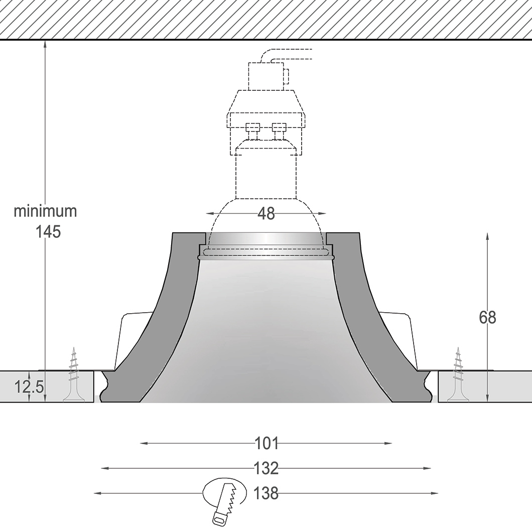 Cutout dimensions: Dia.138mm