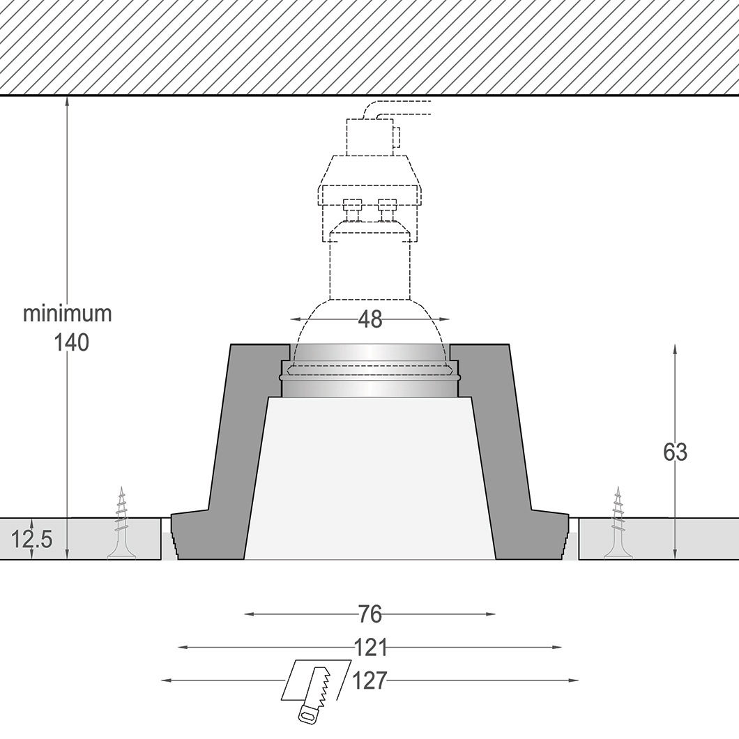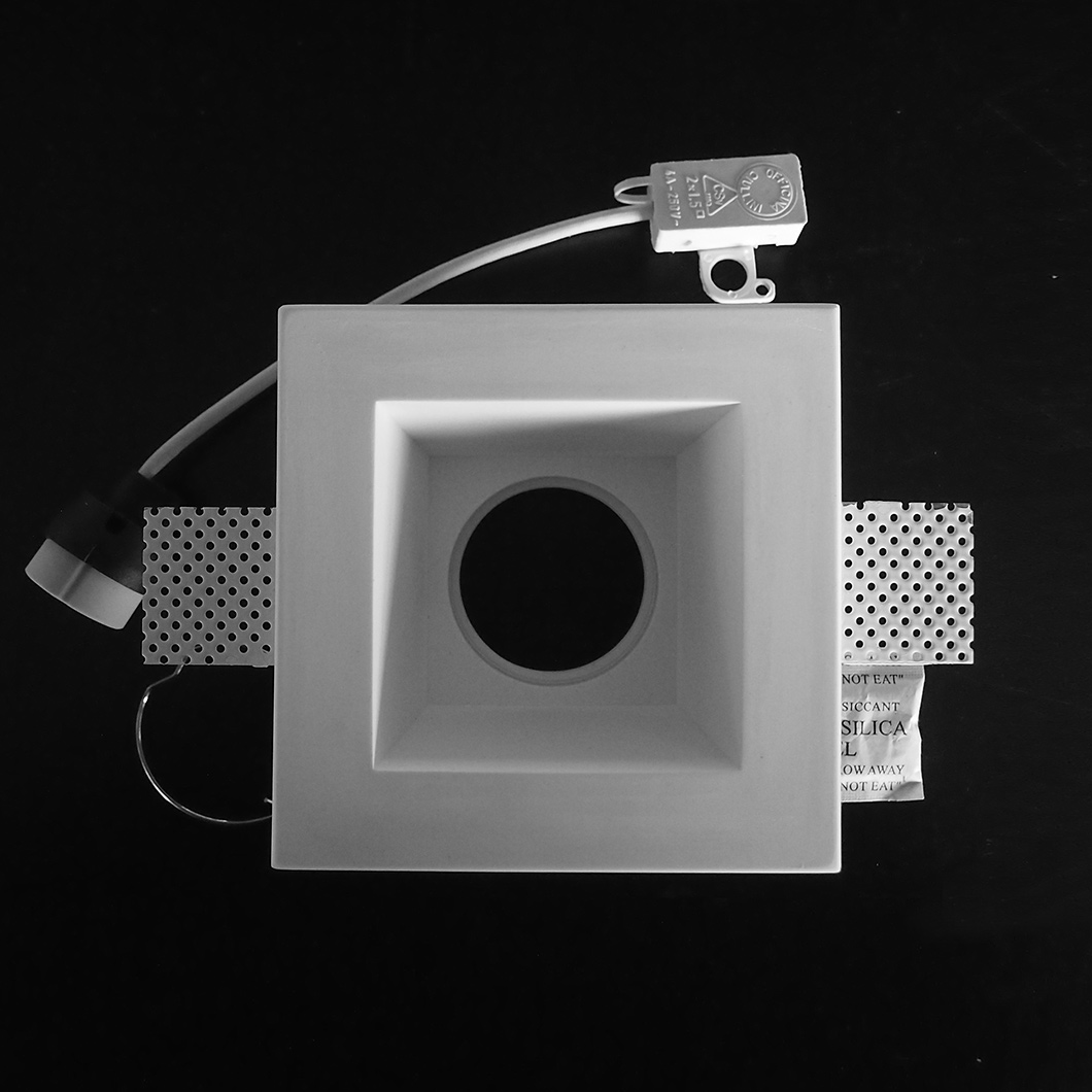 The Fos 08 square recessed plaster-in downlight by Nama is perfect for creating a subtle lighting effect. Fos 08 has a square edge that recesses back into the ceiling in a contemporary and integrated style. Made from a natural plaster that's hard wearing, Fos is easy to decorate in a matching ceiling colour once installed and plastered into the ceiling. Supplied with a GU10 lamp holder, suitable for a MR16 retrofit LED or halogen bulb. Fos 08 needs a minimum depth of 140mm. Bulb not included.
