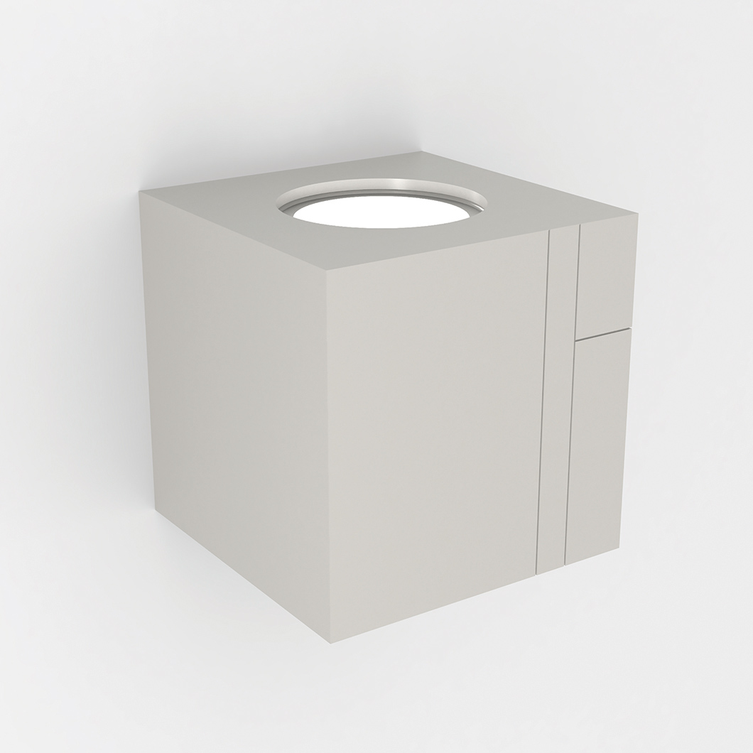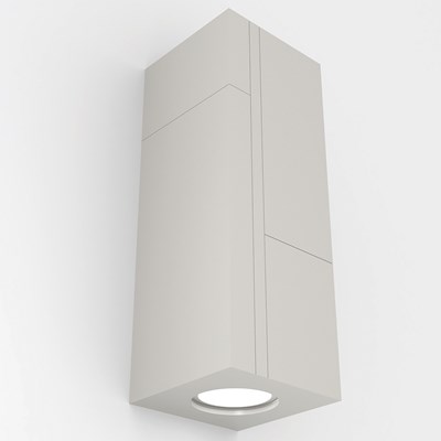 The third version of the Mondi Up & Down, the contemporary Nama Mondi Up Wall Lamp washes a soft ambient light up a wall. With a hint of a Modernist influence, the wall sconce's cube form combines with the straight edged details carved into the natural hard wearing plaster body. The plaster material can be decorated to match a rooms colour palette, the Mondi single emission wall light can also be left in its natural plaster finish.