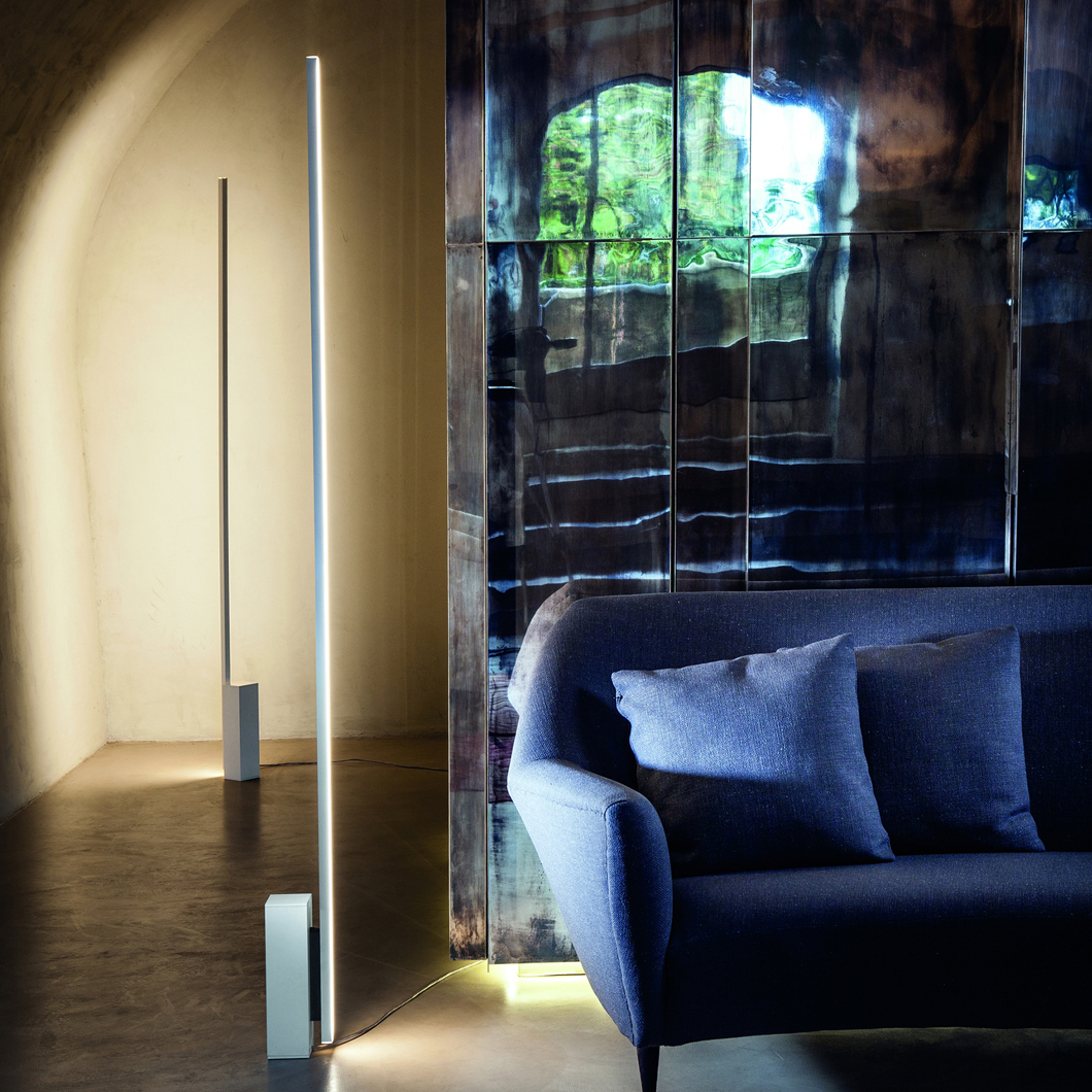 The Nemo Linescapes floor lamp is part of a family of floor, ceiling and wall elements, efficient with an highly versatile linear luminous output. Body in aluminium extruded and opal white polycarbonate diffuser, junctions and fixing components in die-casted aluminum and steel. White finishing with elements painted in grey.