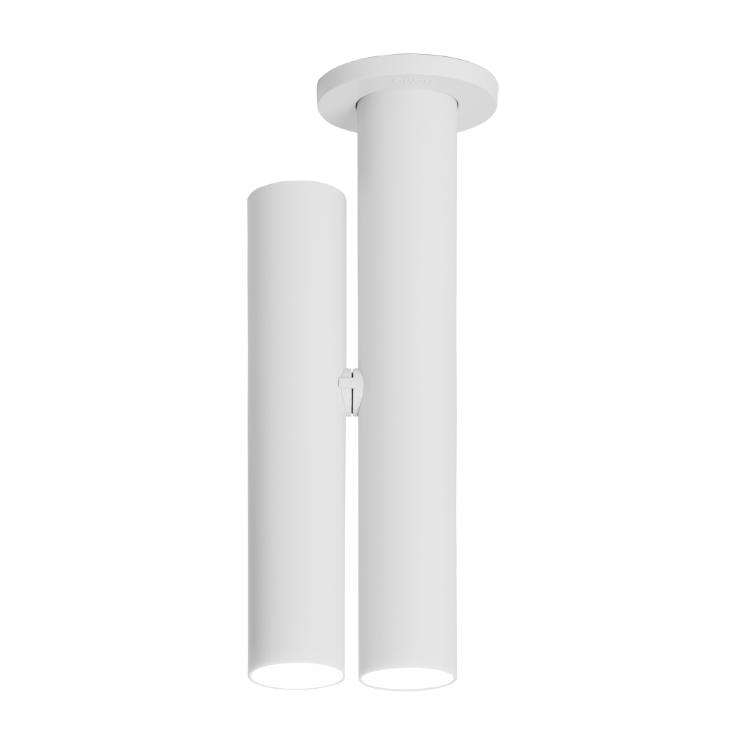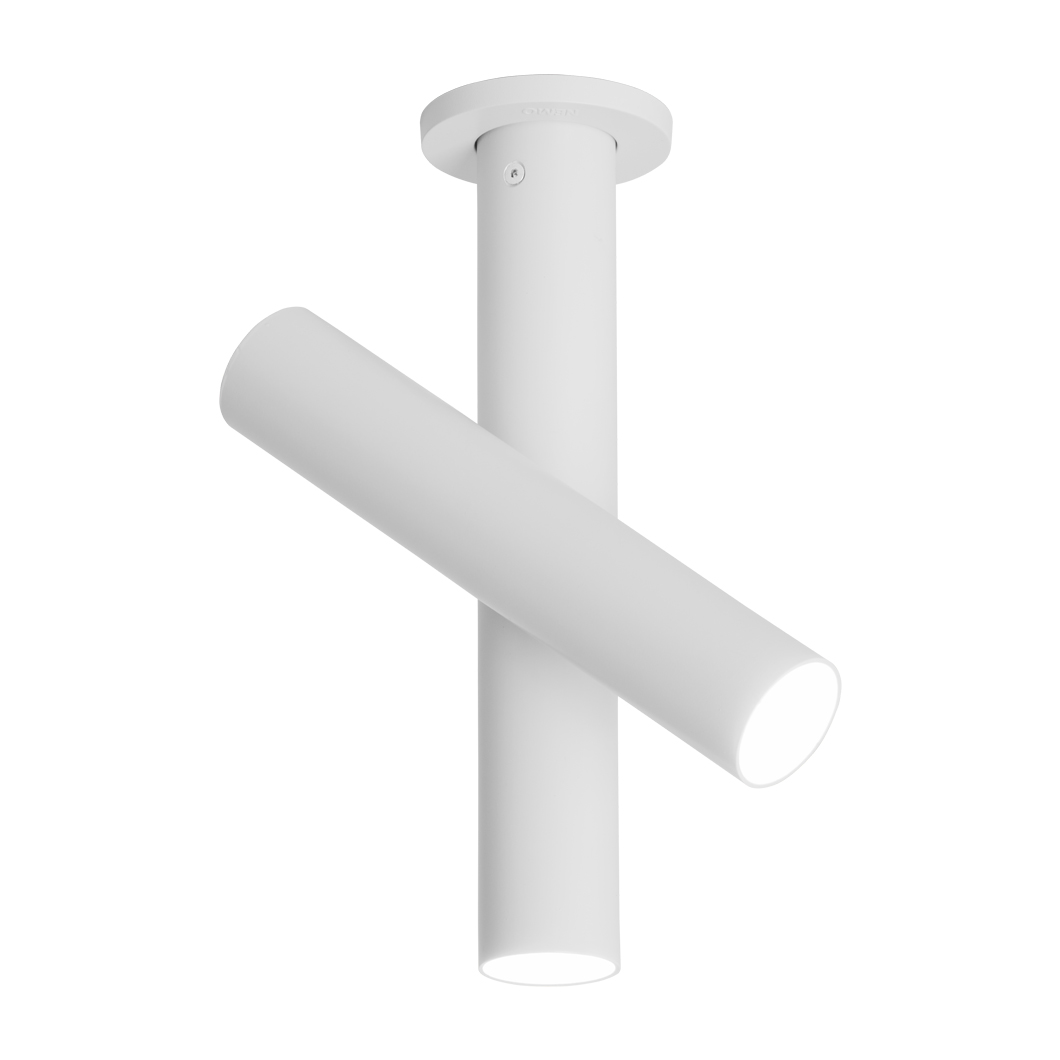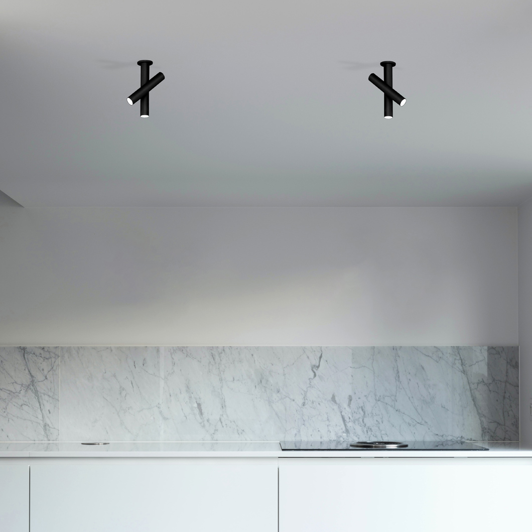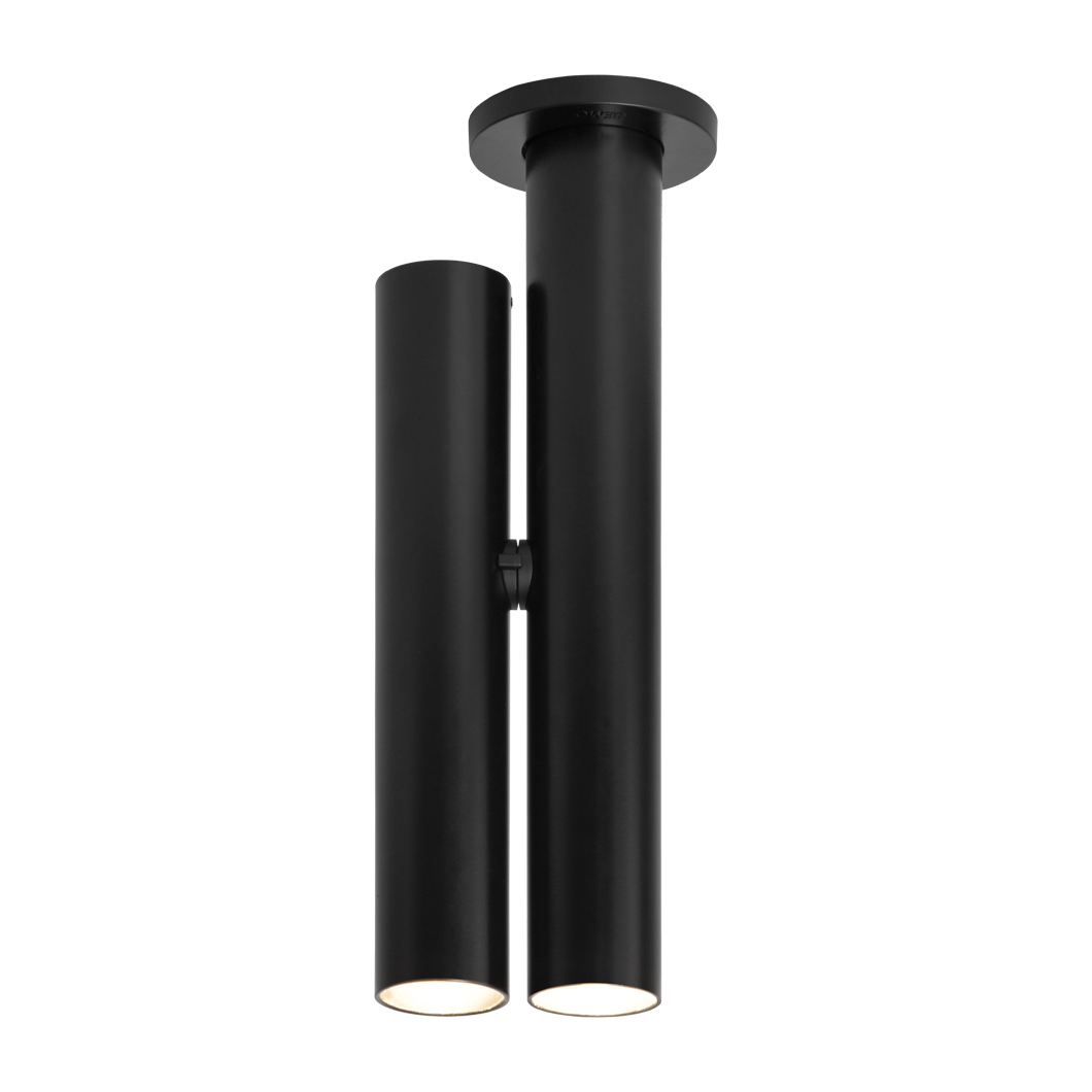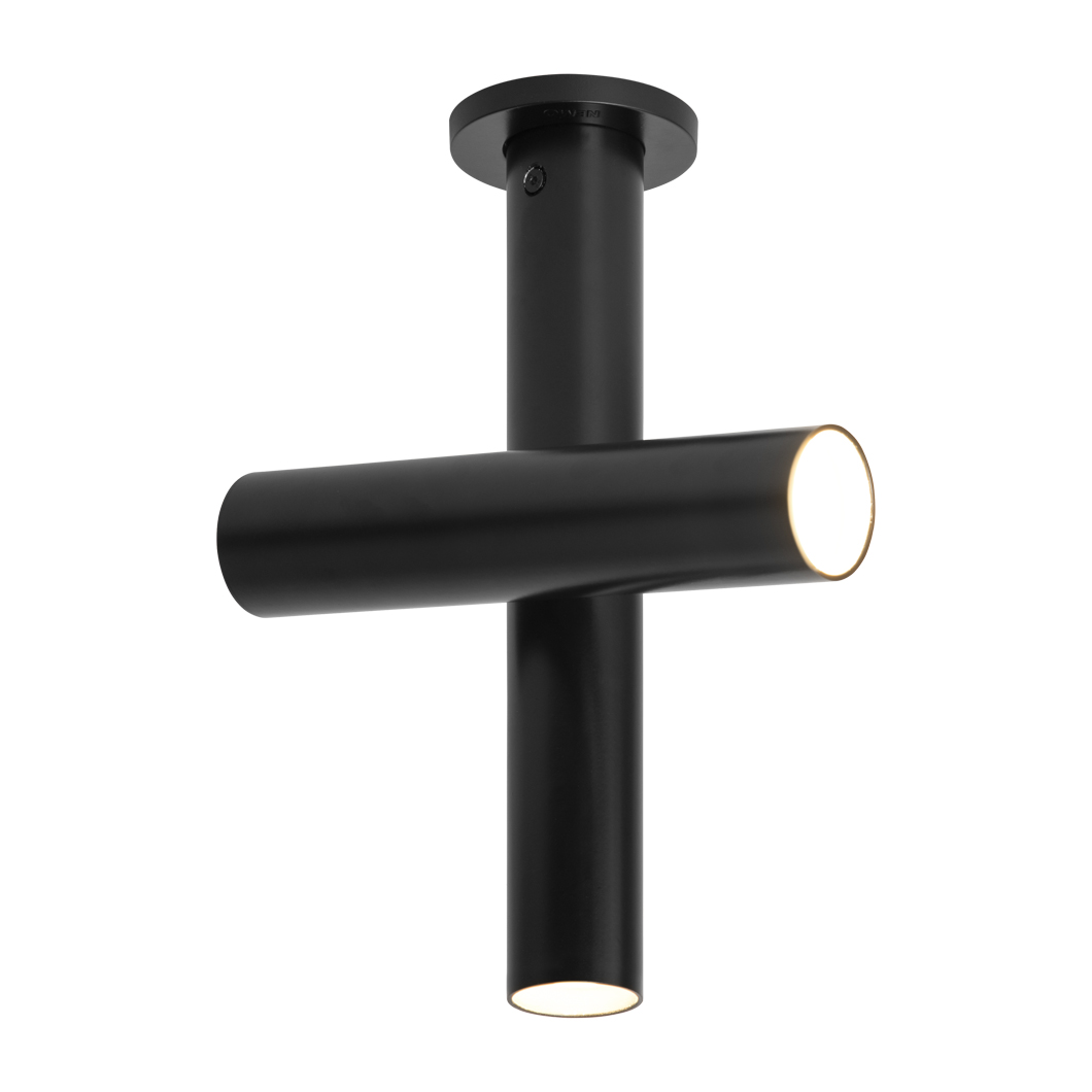 The newest addition to the Tubes family, the Tubes Ceiling Light features a minimal cylindrical design in extruded aluminium. With 2 tubular LED spotlights, one fixed to the ceiling and one adjustable by 340° tilt & rotation, Tubes is perfect for offering a downward spotlight whilst also highlighting a desk, table, work surface or a piece of art. The compact ceiling fitting is available in white or black with an opal polycarbonate diffuser.
