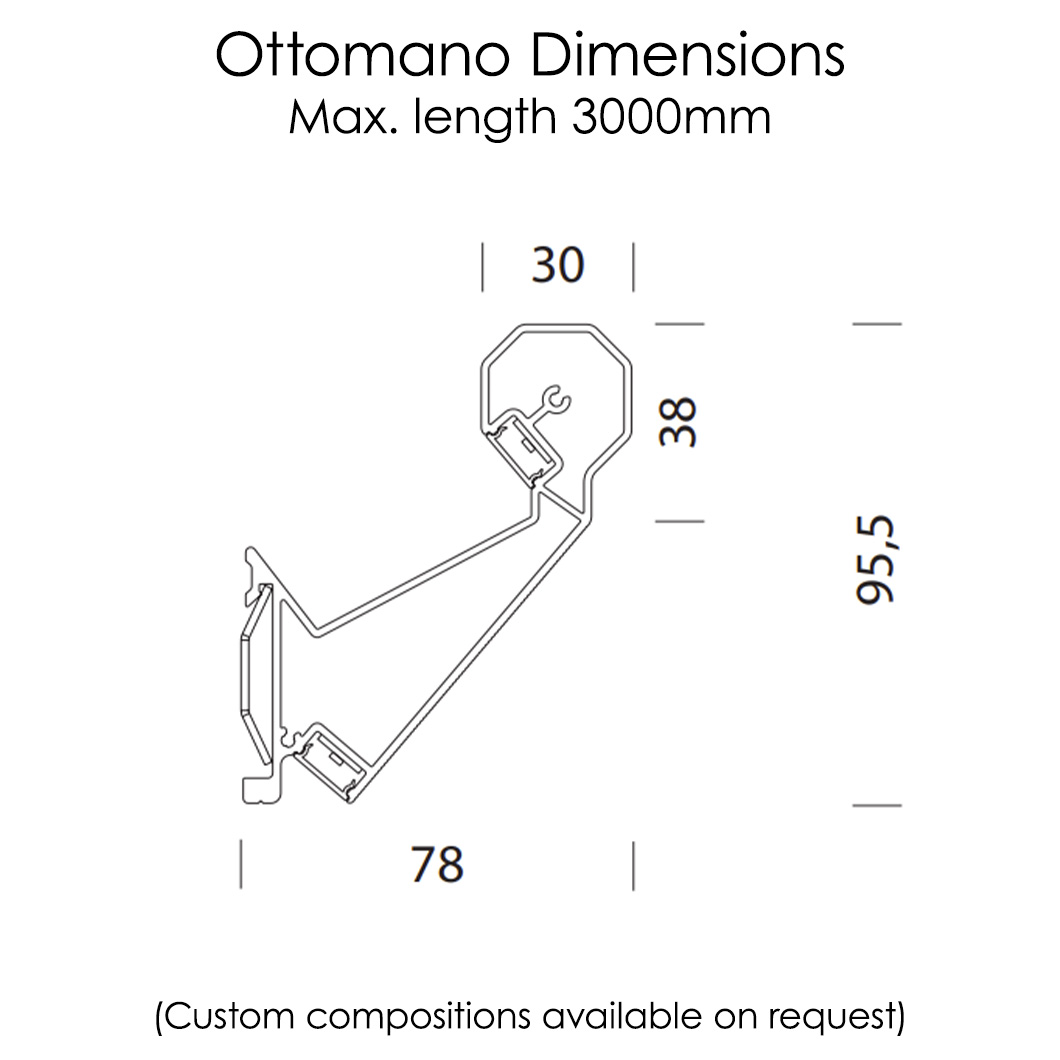 Built from aluminium, the luminous handrail is a striking and unique addition to any modern space. The 8-sided ergonomic shape enhances the handrail's functionality and style. Each Ottomano is custom-made, with adaptations made according to the project specifications. Custom versions, including corner compositions, are available on request. Please contact us for more information.