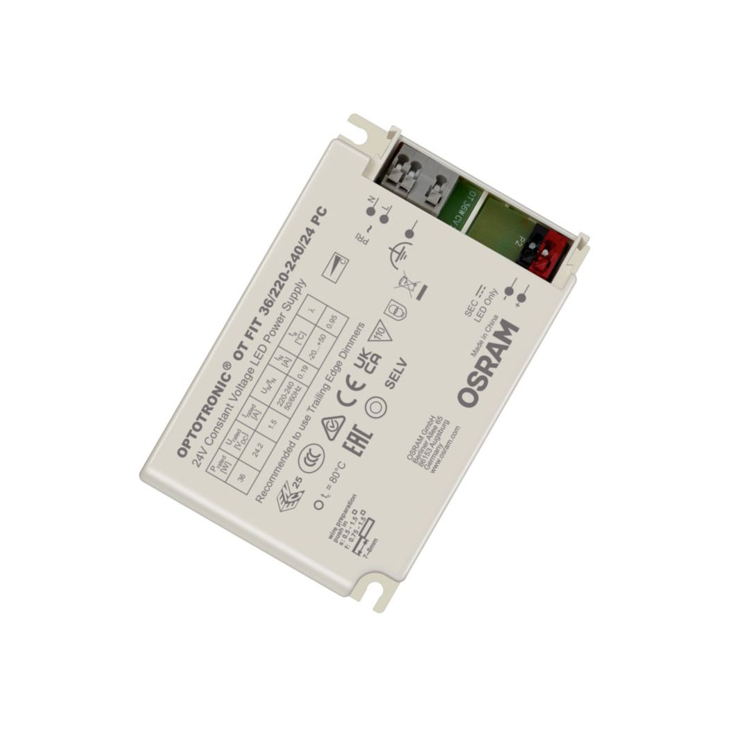 OT FIT 36W is a 24V constant voltage driver, recommended for use with Trailing edge dimming.